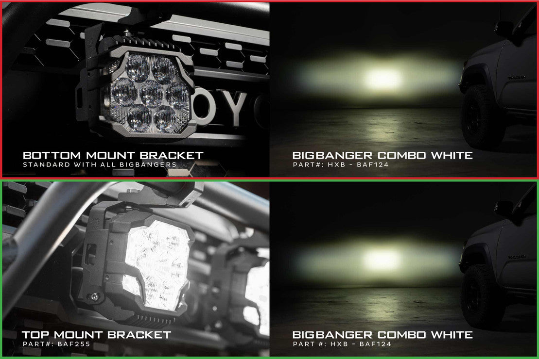 • Plan B: The top down brackets allow users to mount their BigBanger LED pods from the top, while maintaining a low profile and proper beam pattern.