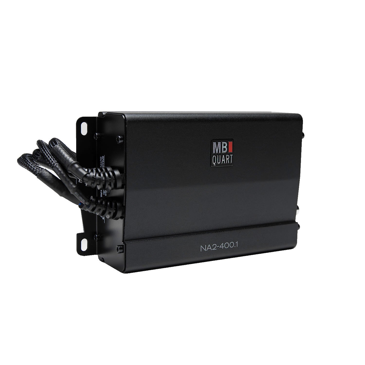 MB Quart compact 400 watt mono Powersports amplifier to for a subwoofer with on-board equalization and simple installation with quick release connectors.