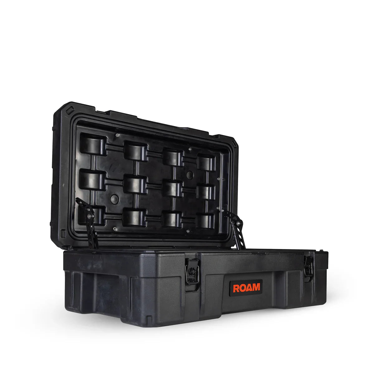 The ROAM 66L Rugged Case is a heavy-duty storage case that comes in 4 color options and is ideal for storing your tools and equipment on your roof rack when extra space is needed. It is designed to work with the 66L Rugged Mounts and is ideal to be mounted in front of a hardshell rooftop tent or cab-over camper. This premium case features a durable LLDPE shell, our proprietary lid lift mechanism, steel lockable latches, and a dust/water resistant gasket seal that makes sure your gear always stays protected no matter the weather or terrain. The threaded inserts in the lid give you the ability to add a lid organizer or molle panel to take your organization to the next level (coming soon). Having an interlocking design makes stacking and pairing simple no matter the amount of gear you carry.