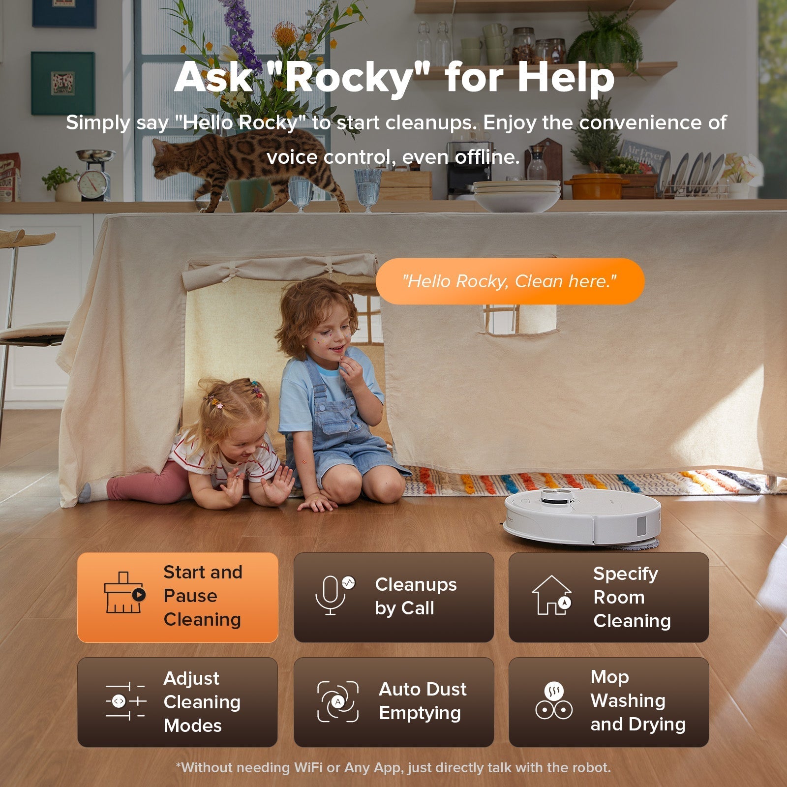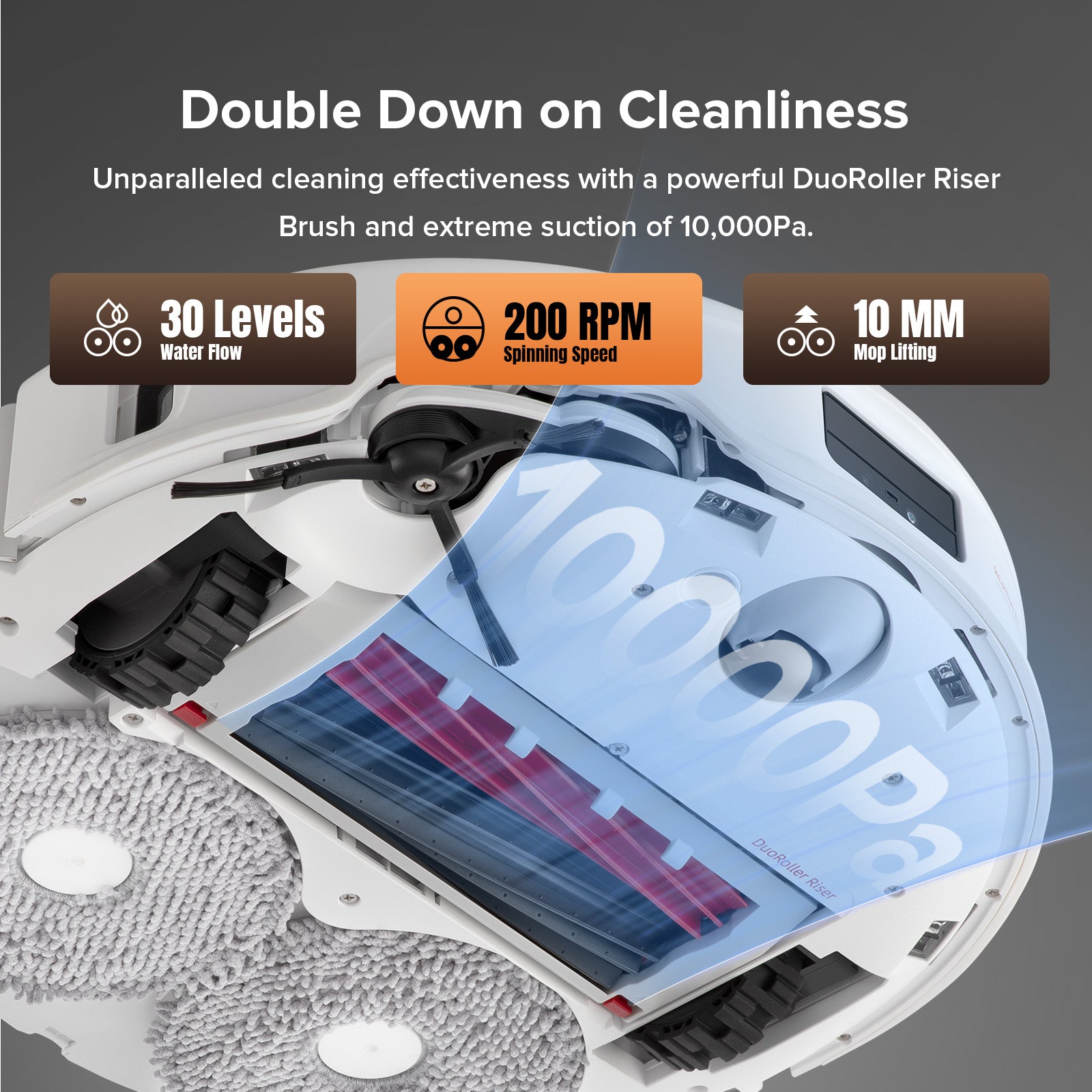 Experience elite cleaning with Roborock Qrevo Master. Boasting FlexiArm Design™ for thorough coverage, HyperForce® suction power, a DuoRoller Riser™ Brush, and Multifunctional Dock 3.0. Convenient cleaning is just a call away with the “Hello Rocky” Intelligent Voice Assistant, coupled with Reactive AI Obstacle Recognition for smooth and pristine cleanups. Get ready for a new level of ease and efficiency.