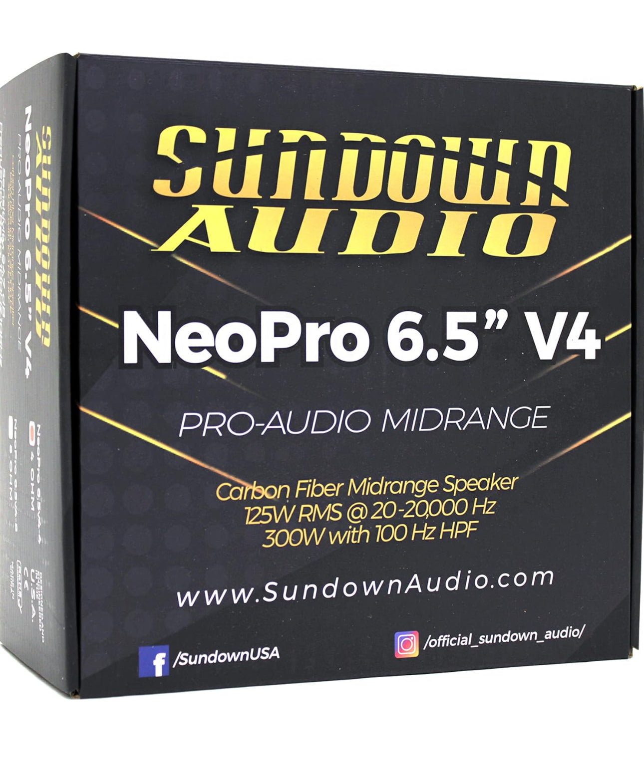 The NeoPro V4 line is Sundown Audio's solution to the weak mid-bass produced by "Pro Sound" style speakers in a car door. Most Pro style speakers are designed for ported boxes as they are re-purposed "club" or "DJ" style speakers. The NeoPro line was specifically engineered for car audio usage! The NeoPro speakers are well known for their smooth sound as much as for their incredible levels of output..