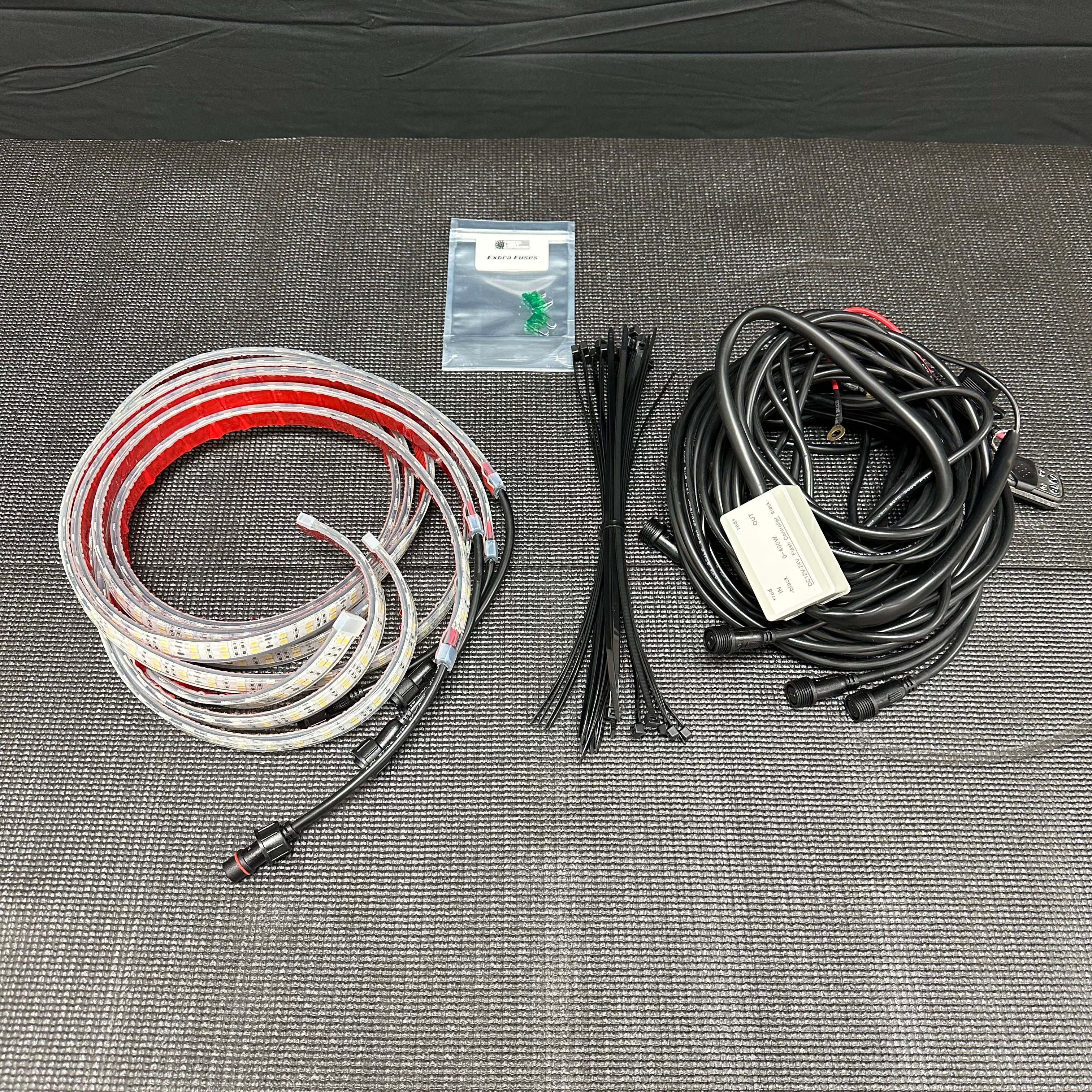 Moreover, all leads boast an overkill 18-gauge wire, ensuring a smooth and robust power flow, enabling high-density wheel lights to effortlessly illuminate. The utilization of an oversized gauge wire significantly enhances the wire harness's overall efficiency, drawing less power while exponentially increasing the brightness of the wheel lights.