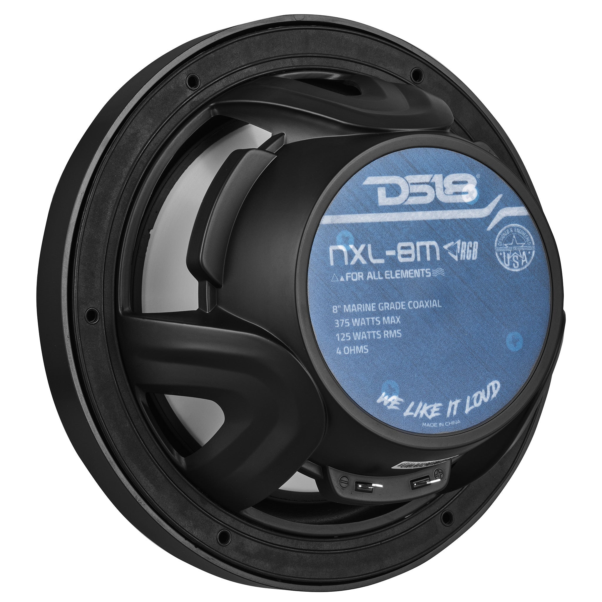 DS18 NXL 8" 2-Way Coaxial Marine Speaker With LED RGB Lights 125 Watts Rms 4-Ohm -Black