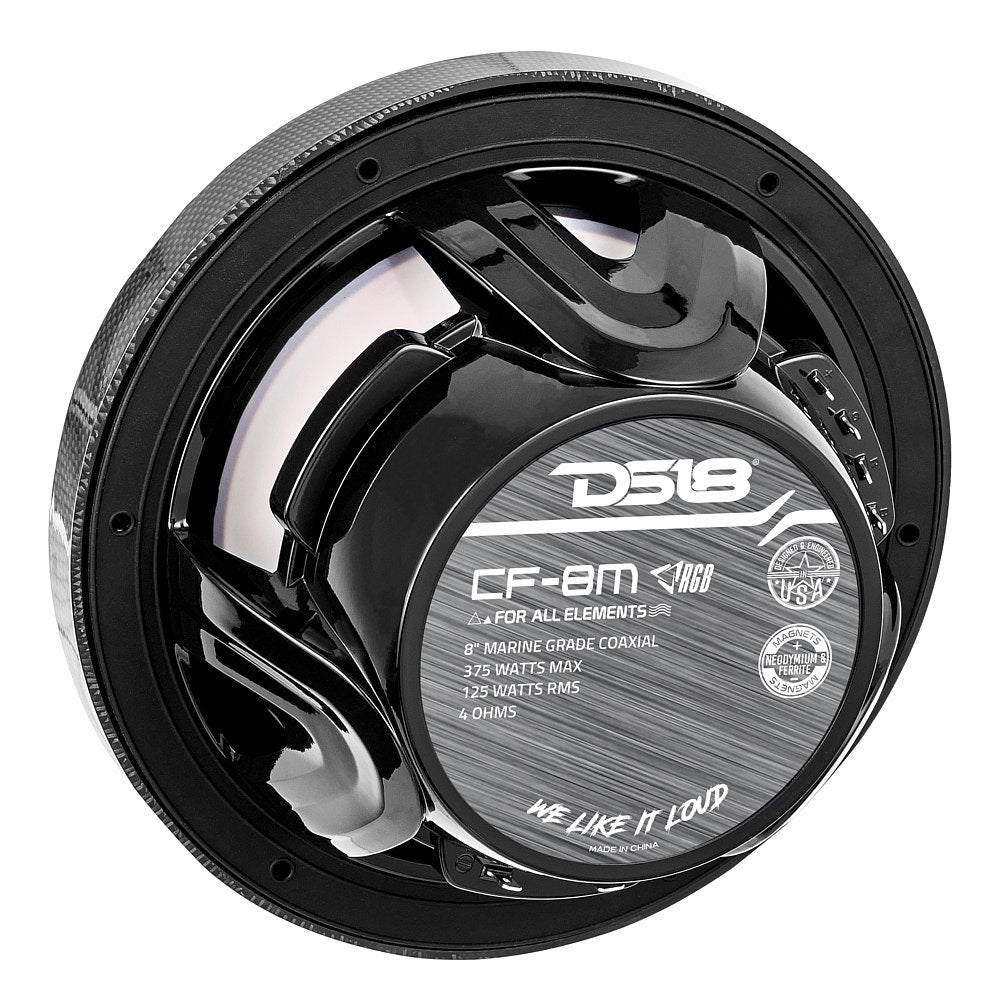 DS18 CF-8 HYDRO 8" 2-Way Marine Speakers with Integrated RGB LED Lights 450W Watts (Black Carbon Fiber) (Pair)
