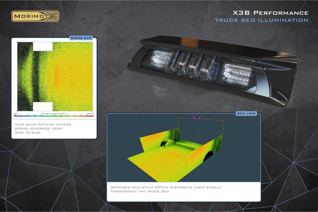 - Efficient Bed Illumination: Uniform rail-style optics light up your truck bed.