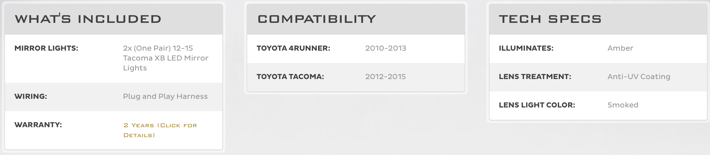 • Mirror Lights: 2x (One Pair) 12-15 Tacoma XB LED Mirror Lights