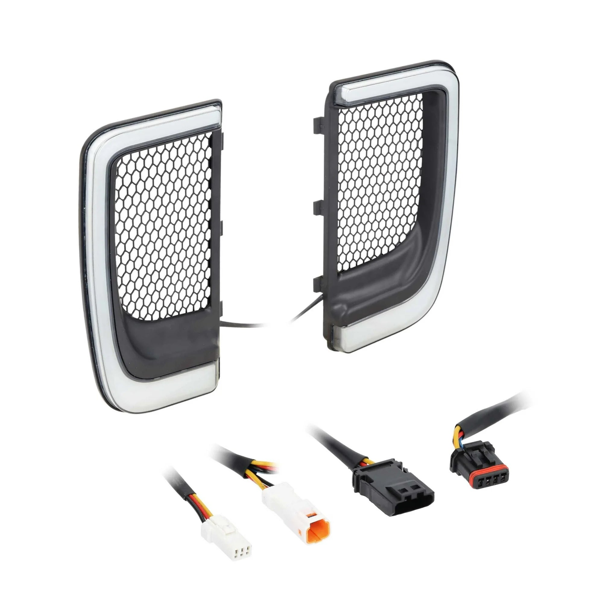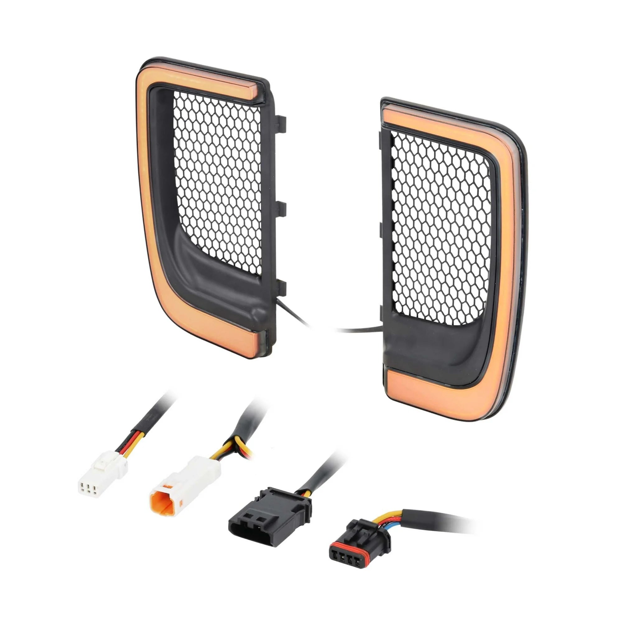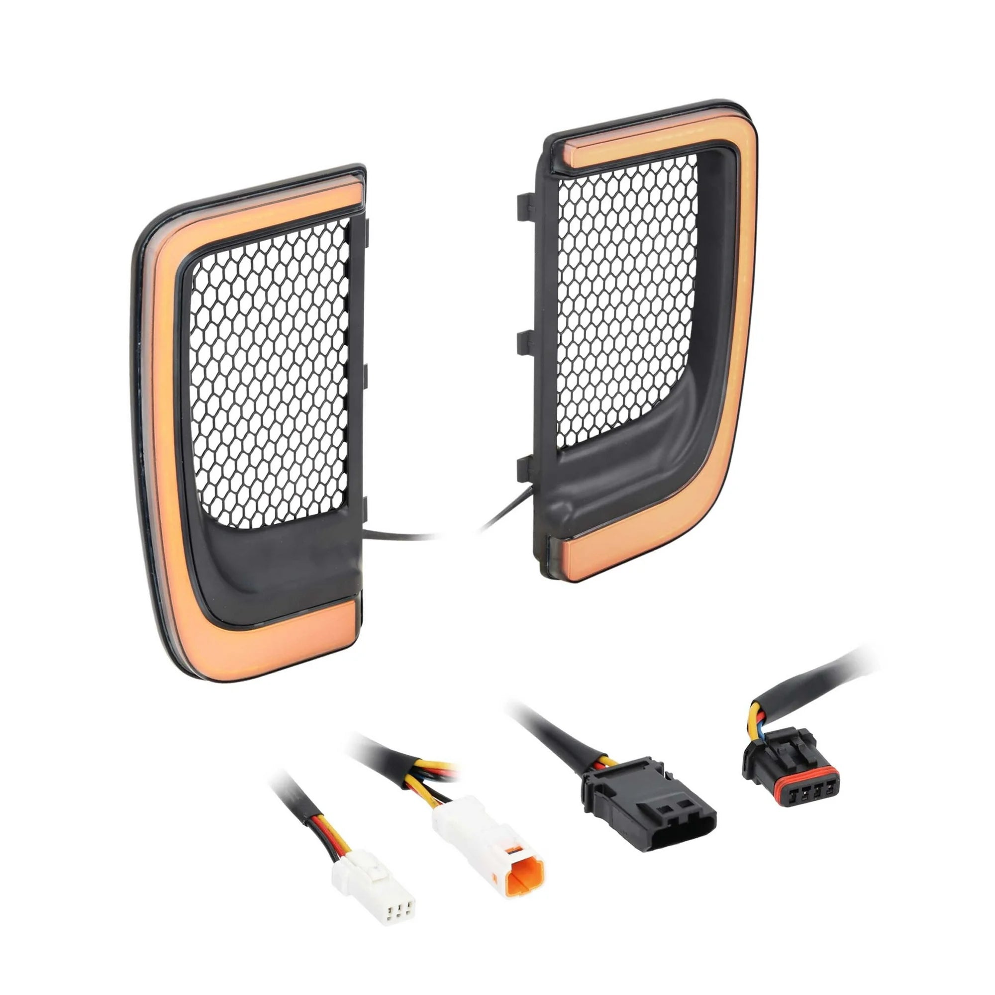 Upgrade your motorcycle’s style and visibility with these Lower Fairing Grill Lights, designed to fit 2014-Up* Harley-Davidson® Touring models with vented lower fairings. These brilliant LEDs install easily with an included T-harness and no drilling required. They feature bright white running lights and amber turn signals that will alert other drivers on the road.