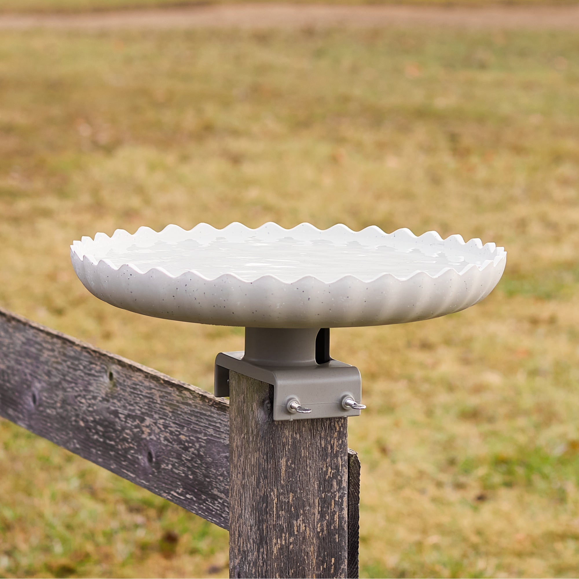 Farm Innovators 120W Outdoor Stone Scalloped Heated Birdbath w/ Deck Mount, Gray