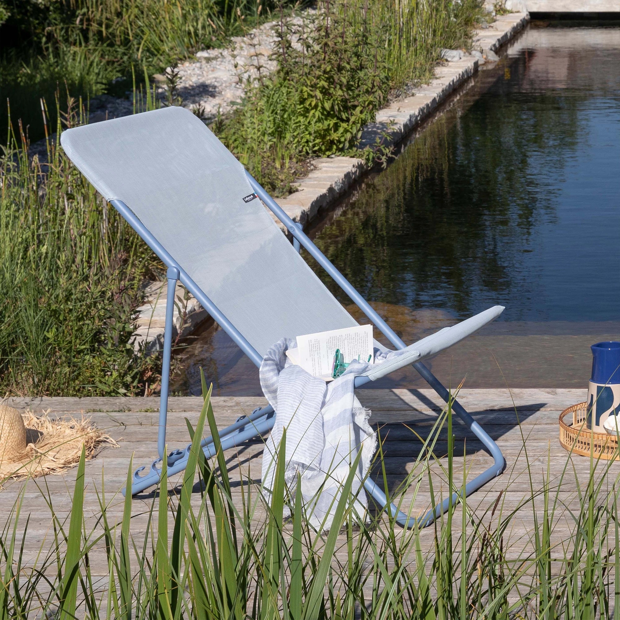Relax and sit in ultimate comfort with the Lafuma Maxi Transat Colorblock Steel Framed Mesh Ultra Compact Foldable Reclining Sling Deck Chair. With a tall back, low, wide seat, and lack of cross-brace at the front of the seat, this chair will satisfyingly fulfill all your wants.