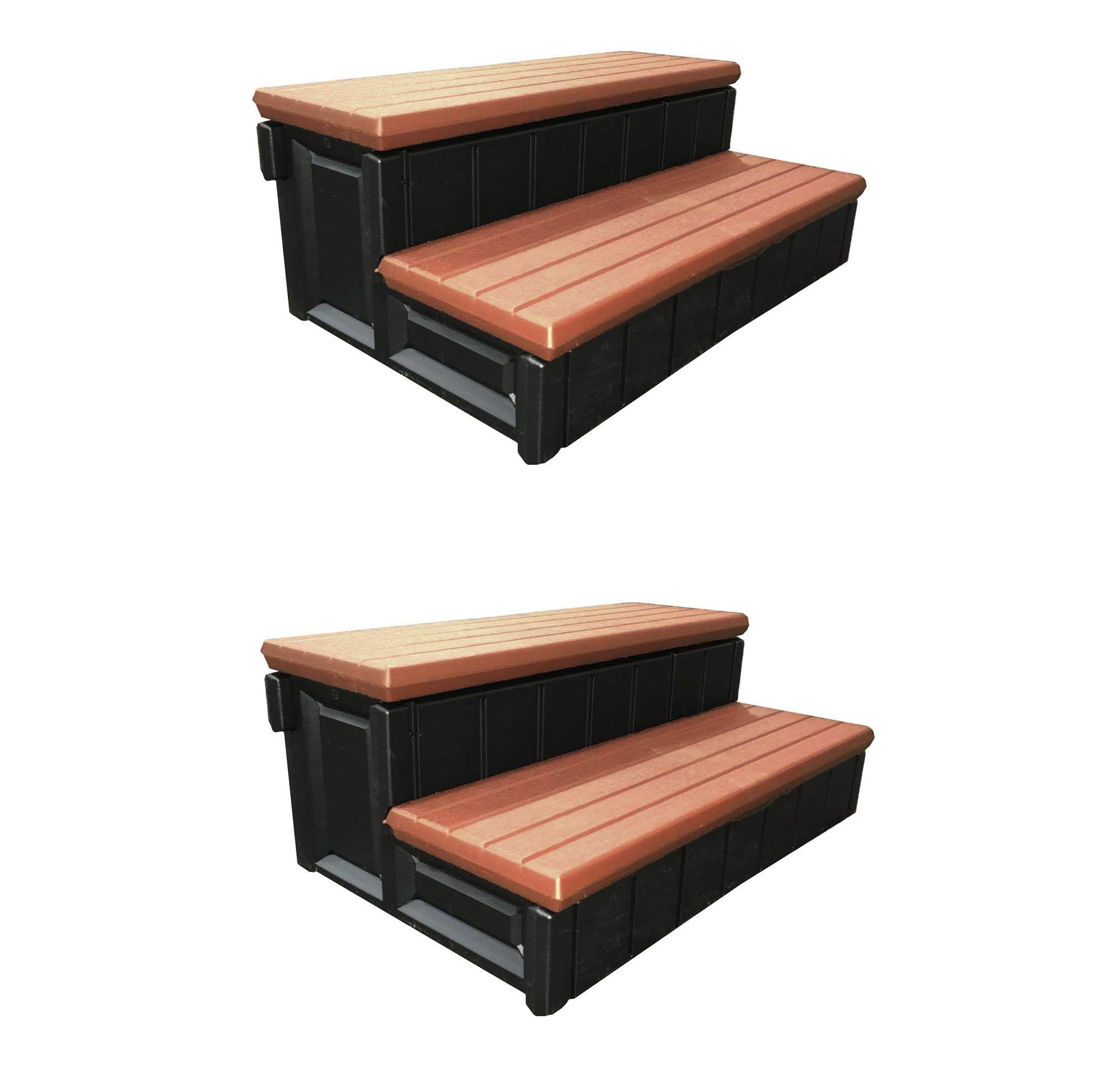 Leisure Accents 36" Deck Spa Hot Tub Storage Compartment Steps, Redwood (2 Pack)