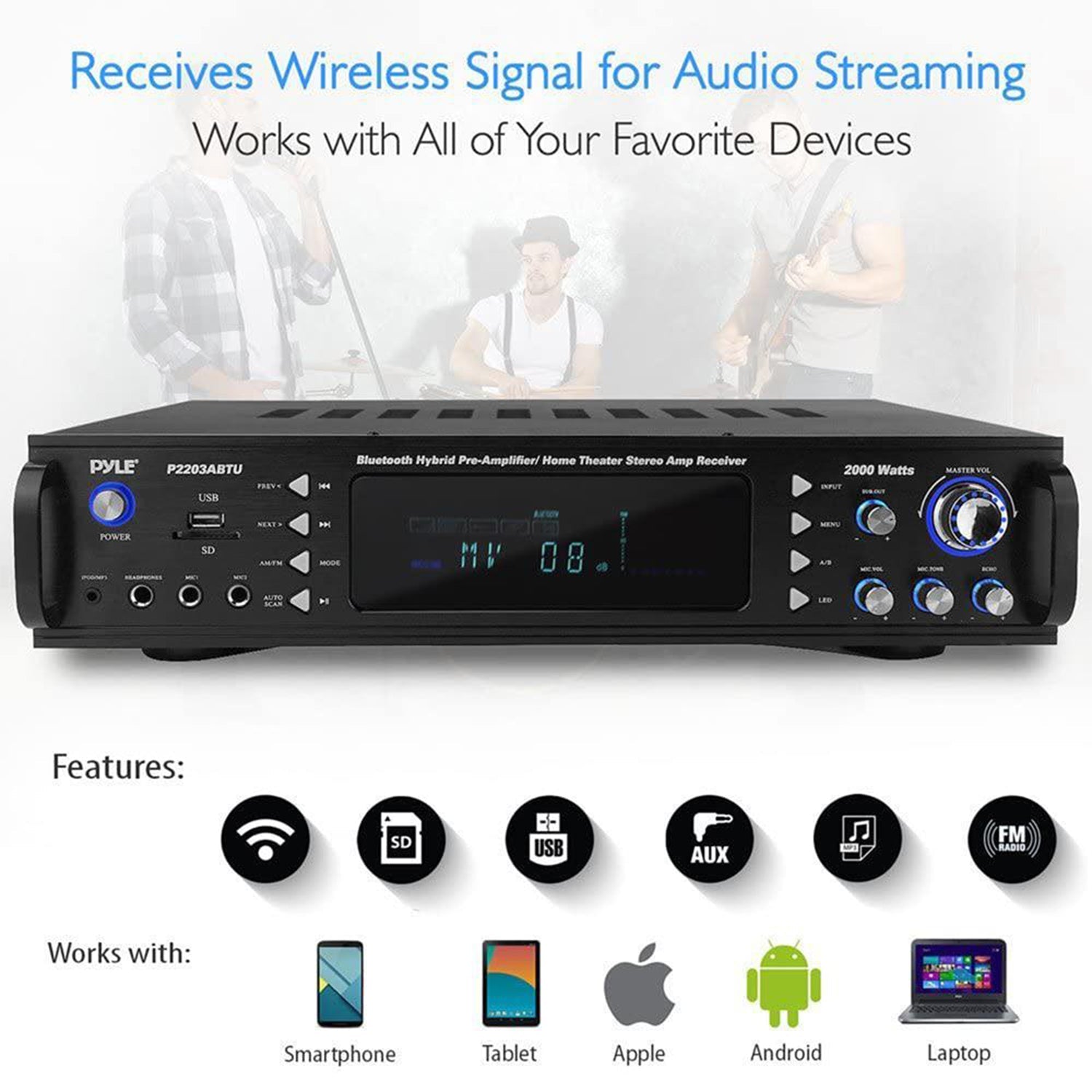 Take control of your home audio theater setup with the Pyle P2203ABTU.5 Home Theater Bluetooth Hybrid Pre-Amplifier Stereo Receiver.