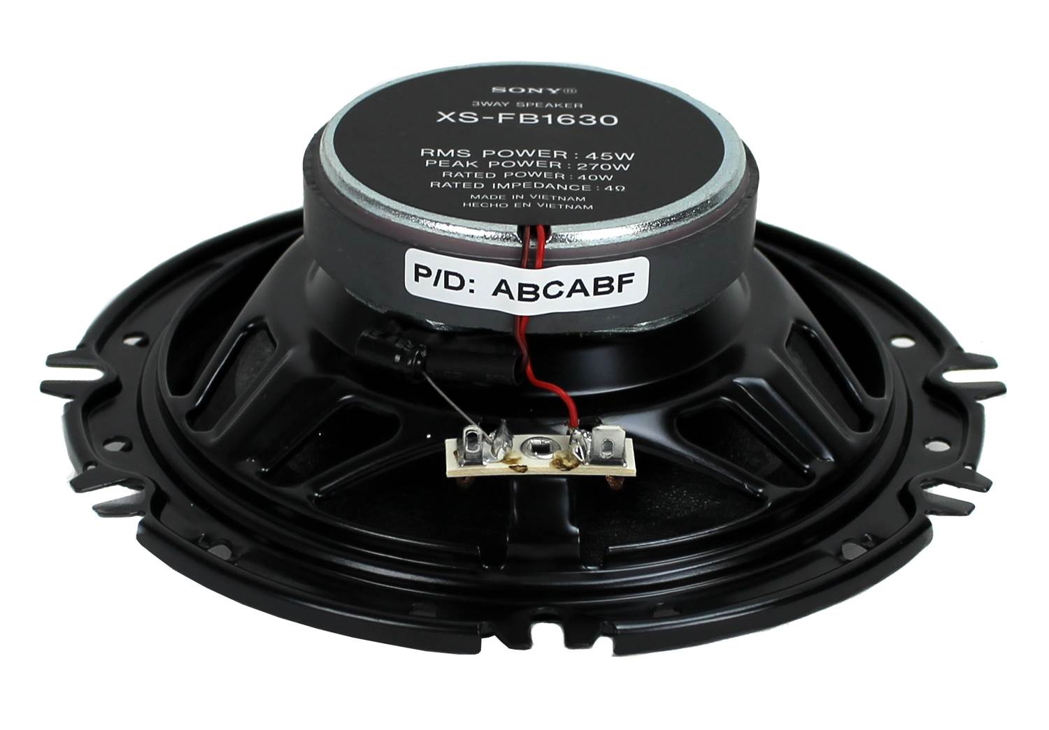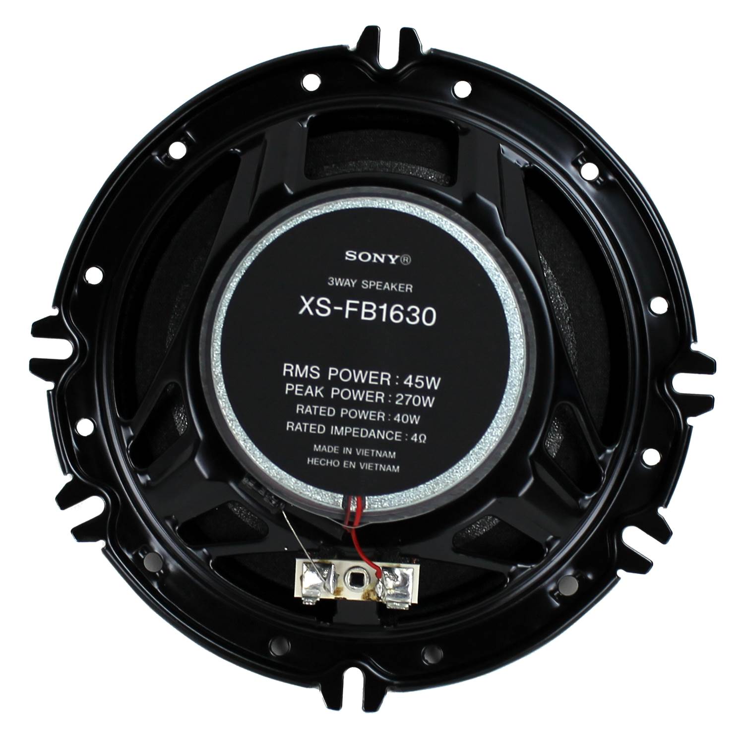The **Sony XS FB1630** 6.5" speakers use a classic 3 way axial design. The woofer cone is constructed from HOP/Aramid fiber for smooth mid range frequencies and the PEI tweeters delivers clear high frequencies. The XS FB1630 power handling is 260 Watts Max Power and 40 Watts Rated power. Upgrade your existing car audio system with speakers specially designed with high power handling and dynamic audio performance with solid, low end bass in mind. The perfect match for a high powered Sony head unit, FB speakers feature beefed up internals and rigid MRC woofers to deliver BIG sound from a conventionally sized and priced speaker.
