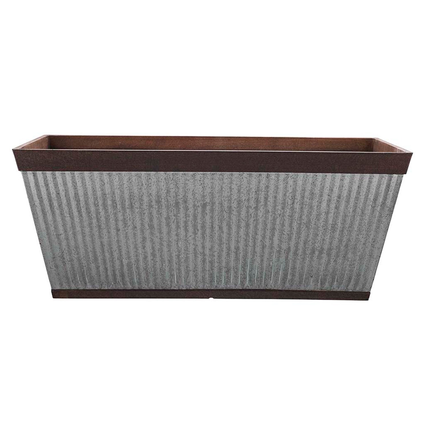 - Spacious rectangular planter features pleated texture and attractive rustic galvanized finish