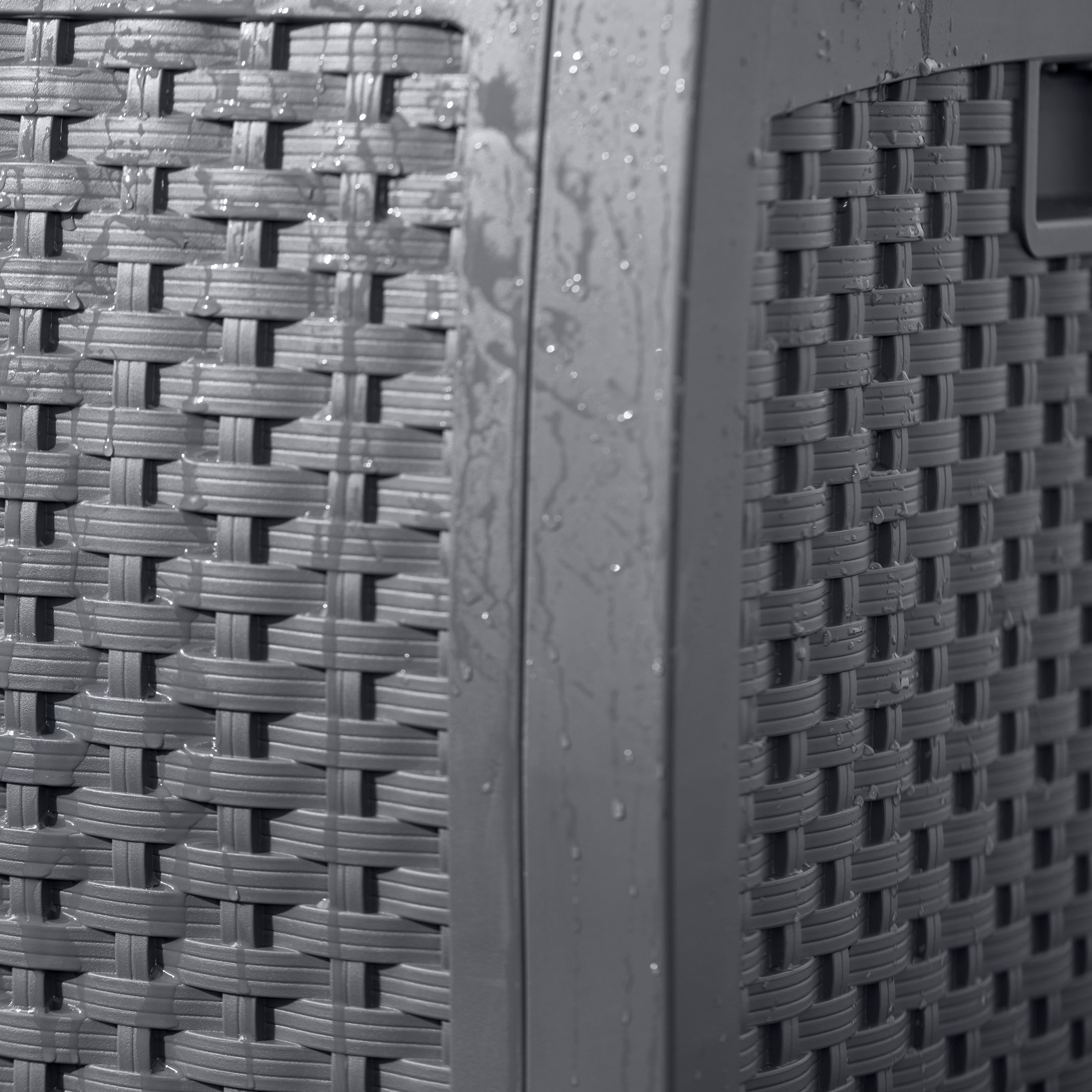 The wicker resin storage container is an attractive and highly versatile solution for use throughout your home and yard to declutter and store accessories. The 73-gallon patio deck box is composed of water-resisting and all-weather resin for durable construction and outdoor elements. and matched with a contemporary design to bring style and harmony to any outdoor seating. Great for most patios, decks, and pools when needing to store outdoor accessories, pool things, and or tools in a stay dry container. The reinforced lid allows for easy access and is designed to keep all of your items safe from mildew, rain, and snow. Suncast storage container comes with very little assembly and tools required allowing you to get back to your day and straight to storing your items.