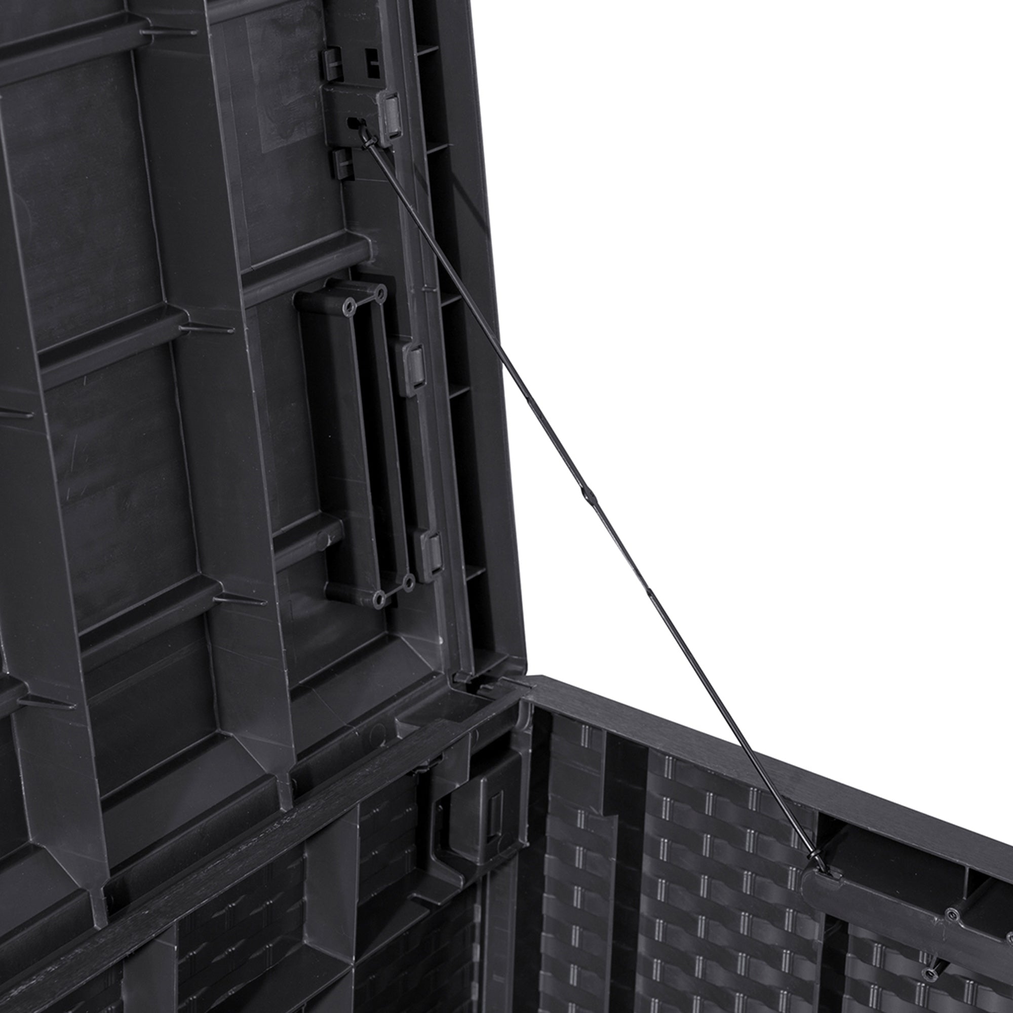 Made from a heavy-duty polypropylene plastic construction, this deck box is durable and prevents rusting, peeling, fading, and denting. For added security, you can add a lock on the lockable lid. This patio storage container has a weight capacity of 450 pounds.