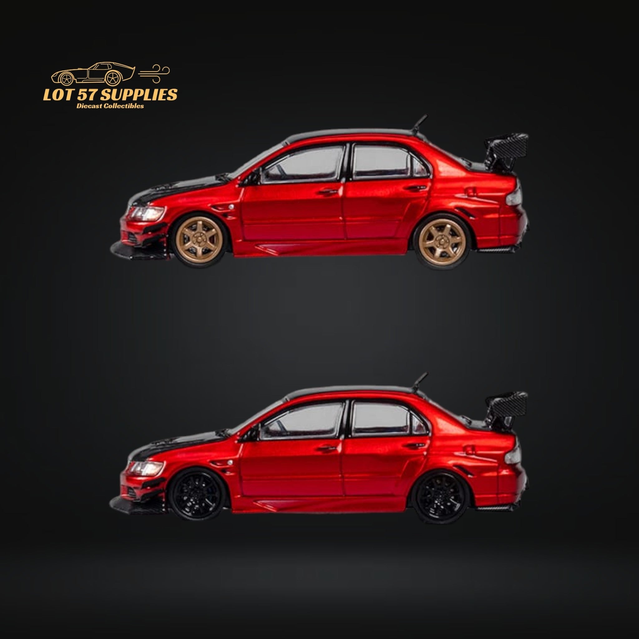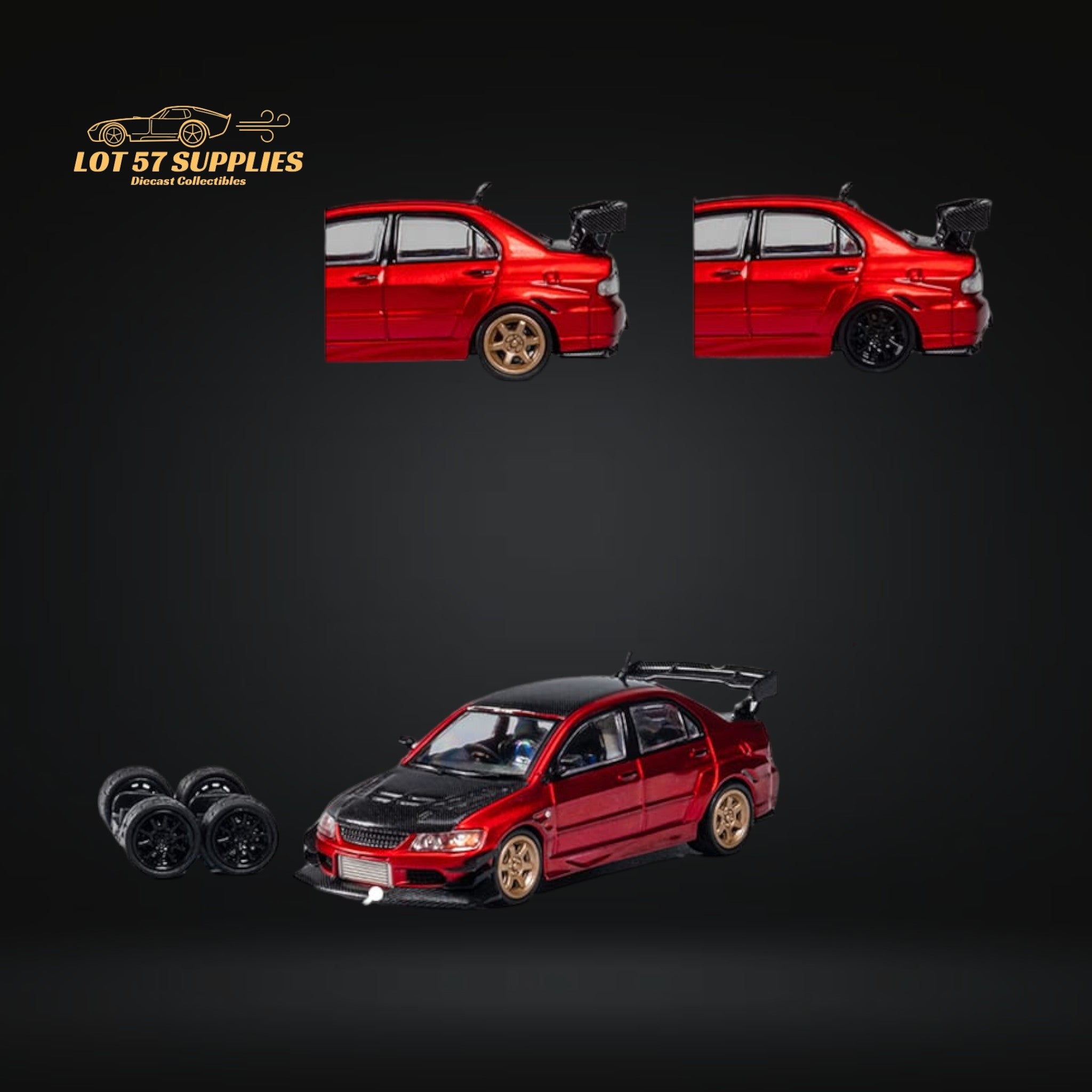 CM Model Mitsubishi Lancer Evolution IX Widebody Metallic Red Carbon Hood 1:64