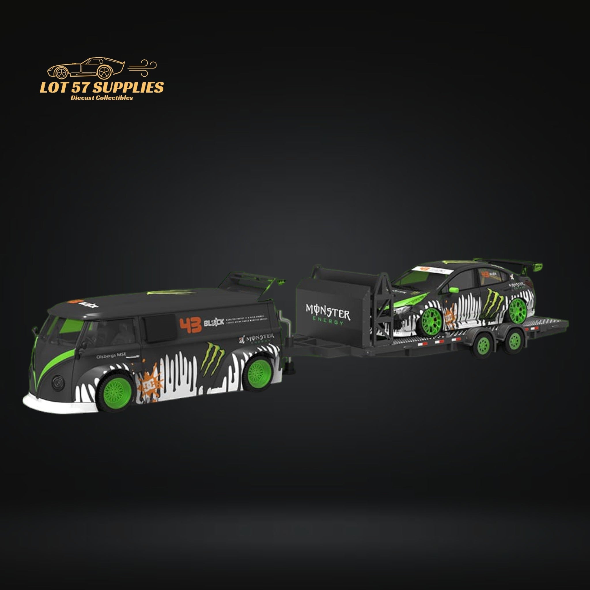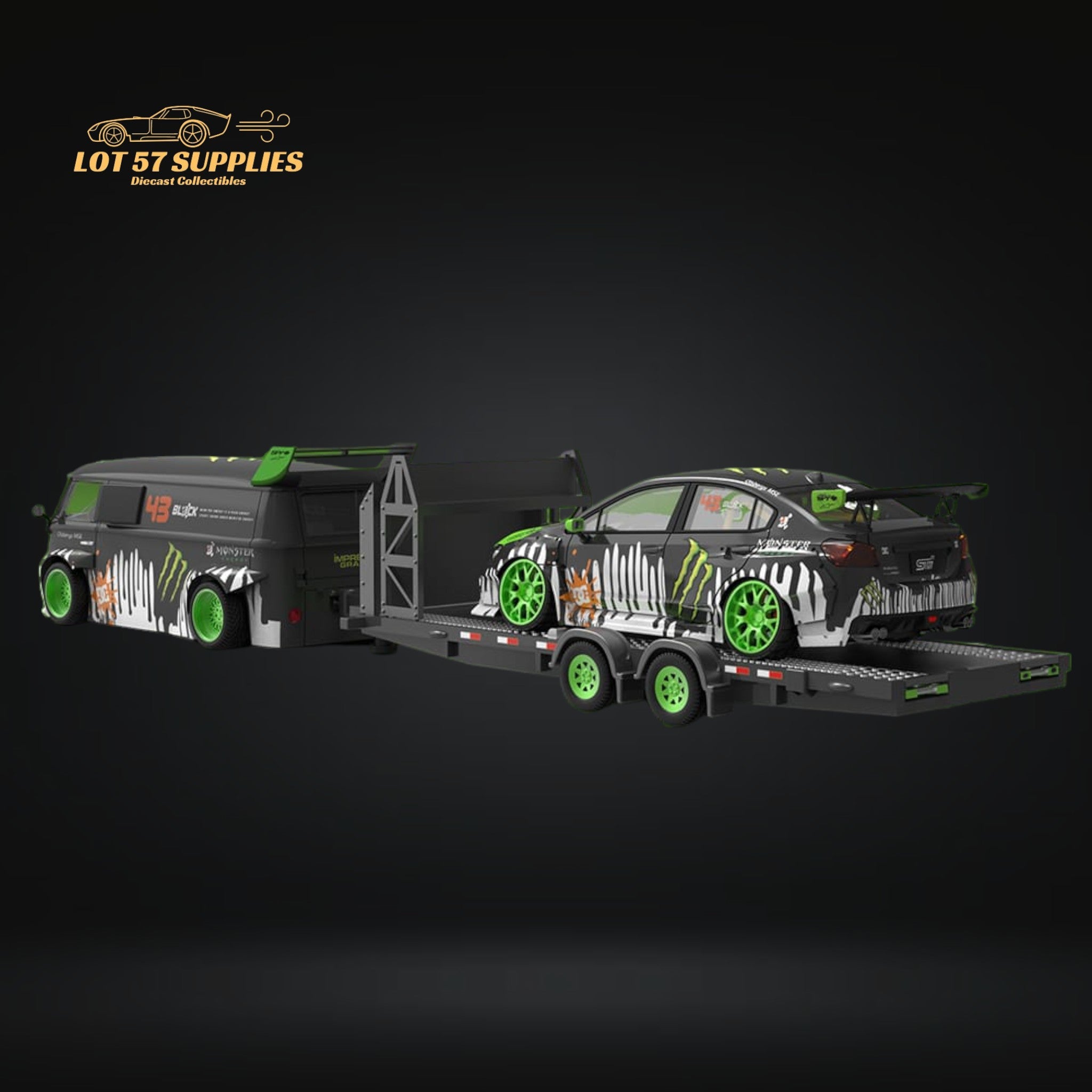 TimeMicro Volkswagen RWB T1 Bus Subaru WRX STI Trailer SET Monster Livery 1:64 TM642920-T