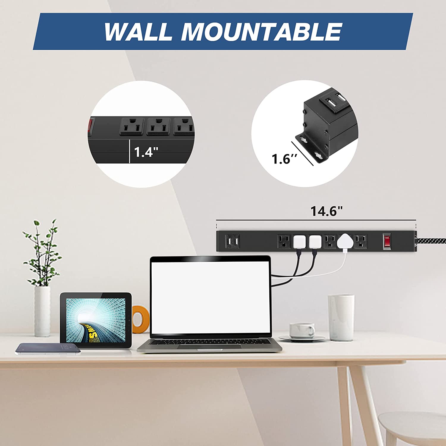 Fast Charing & Mountable: 6 AC outlets with 2 USB port.1800W/15A/120V.2 smart USB ports eliminate the need for multiple chargers, deliver the faster charge speed up to 2.4A(5V/2.4A Max each port)
