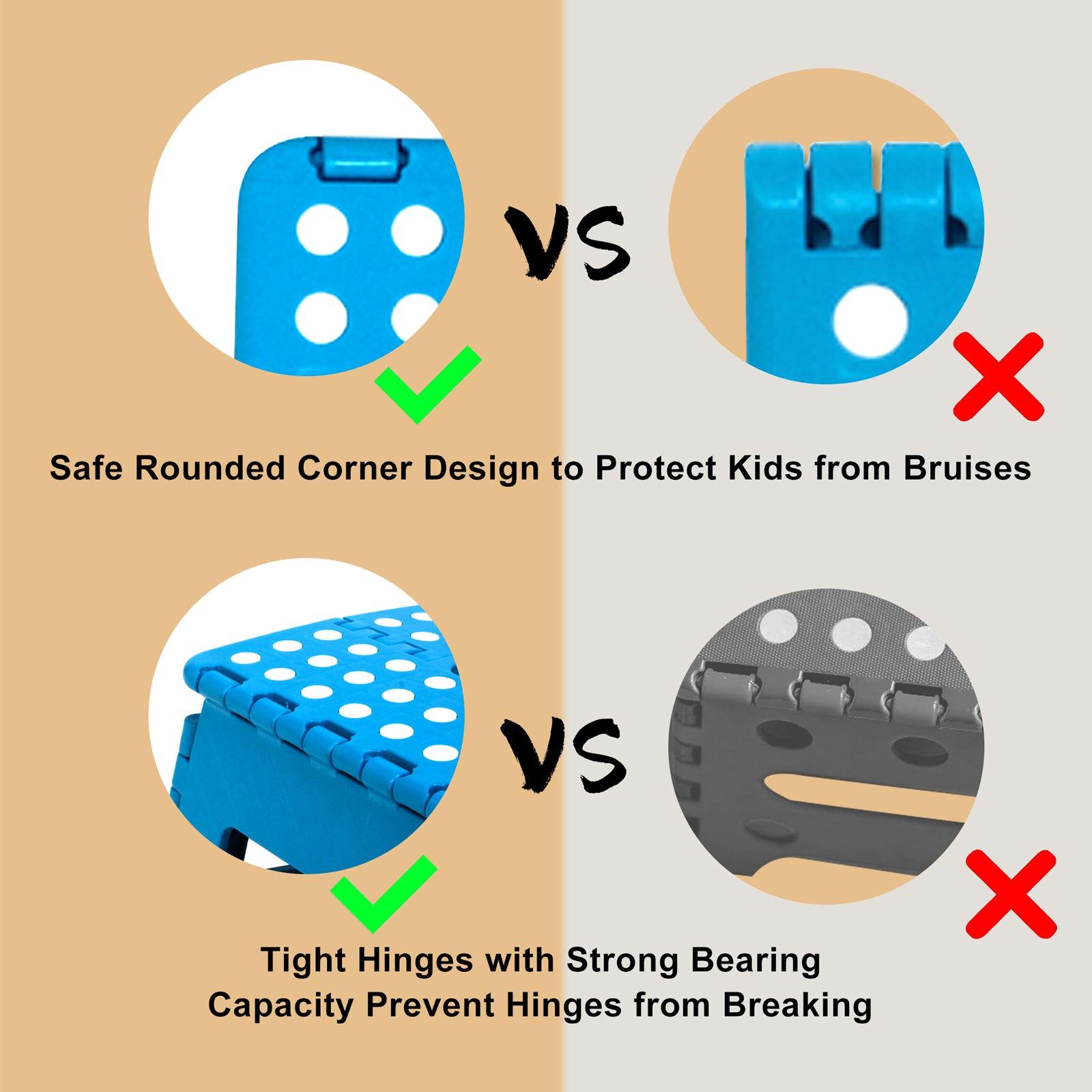 Our Bosonshop Folding Step Stool is made of high-quality plastic which can hold up to 300 pounds. Strong enough to increase height to reach high things.