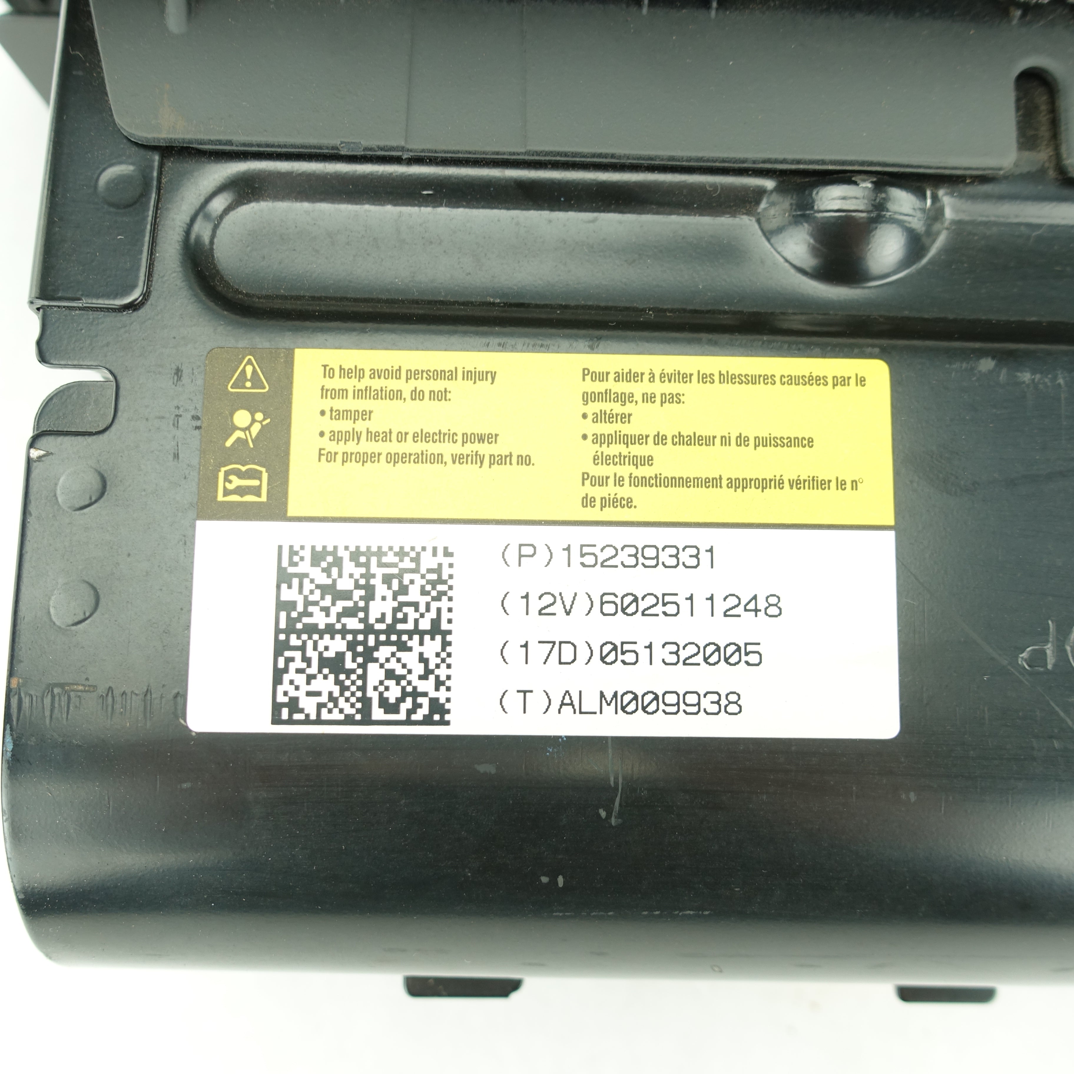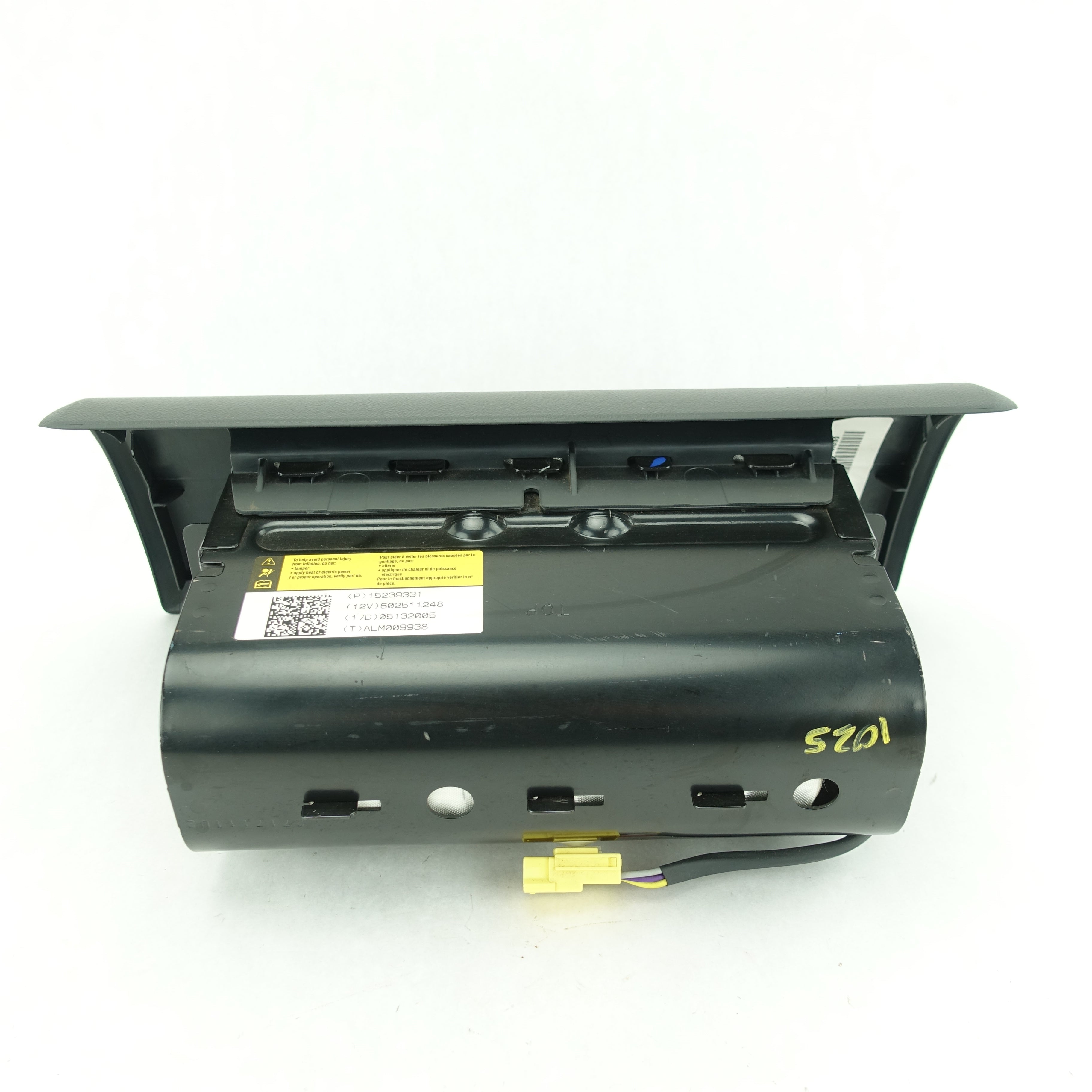 This is a used airbag from a 2005 GMC Canyon. The item has some marks on its face.