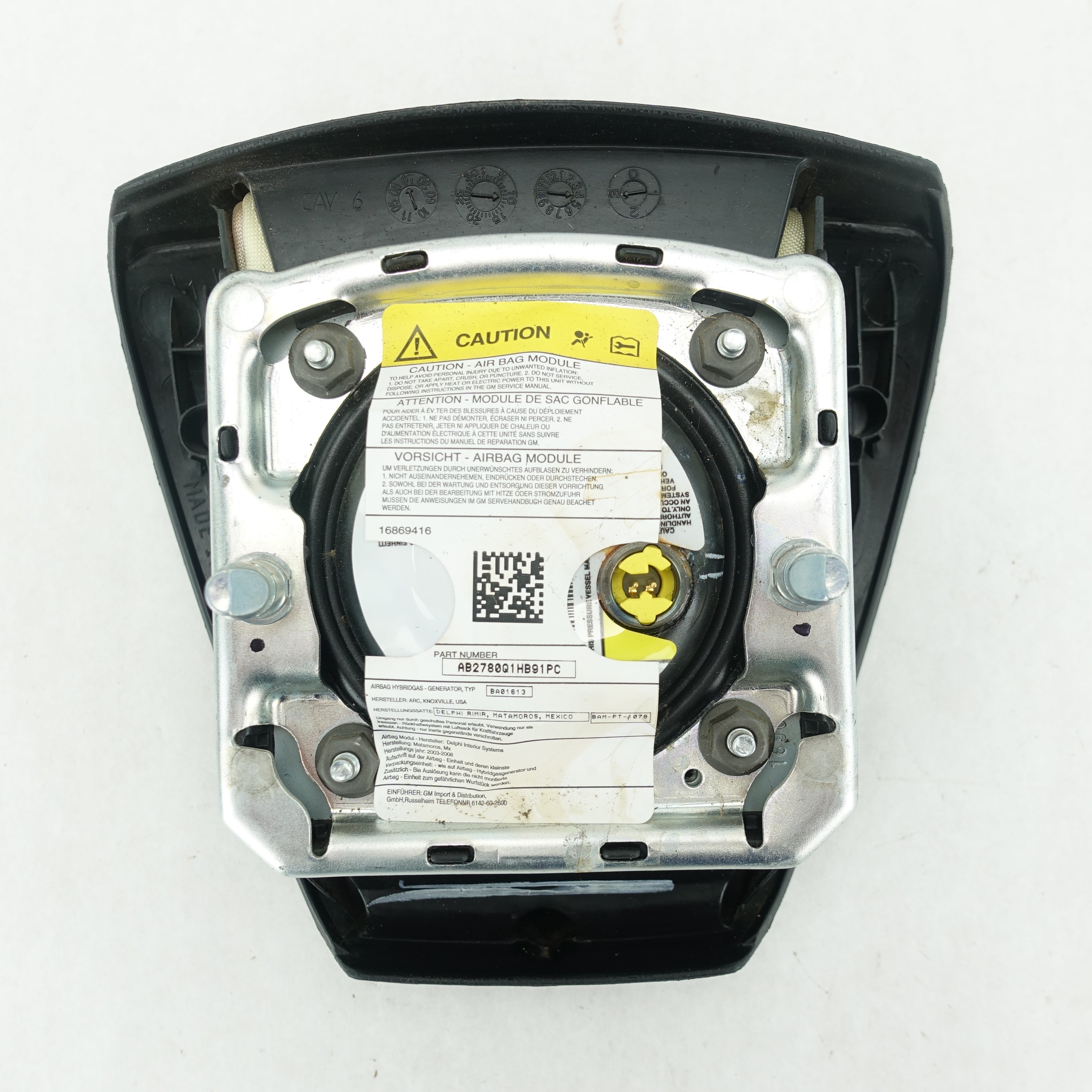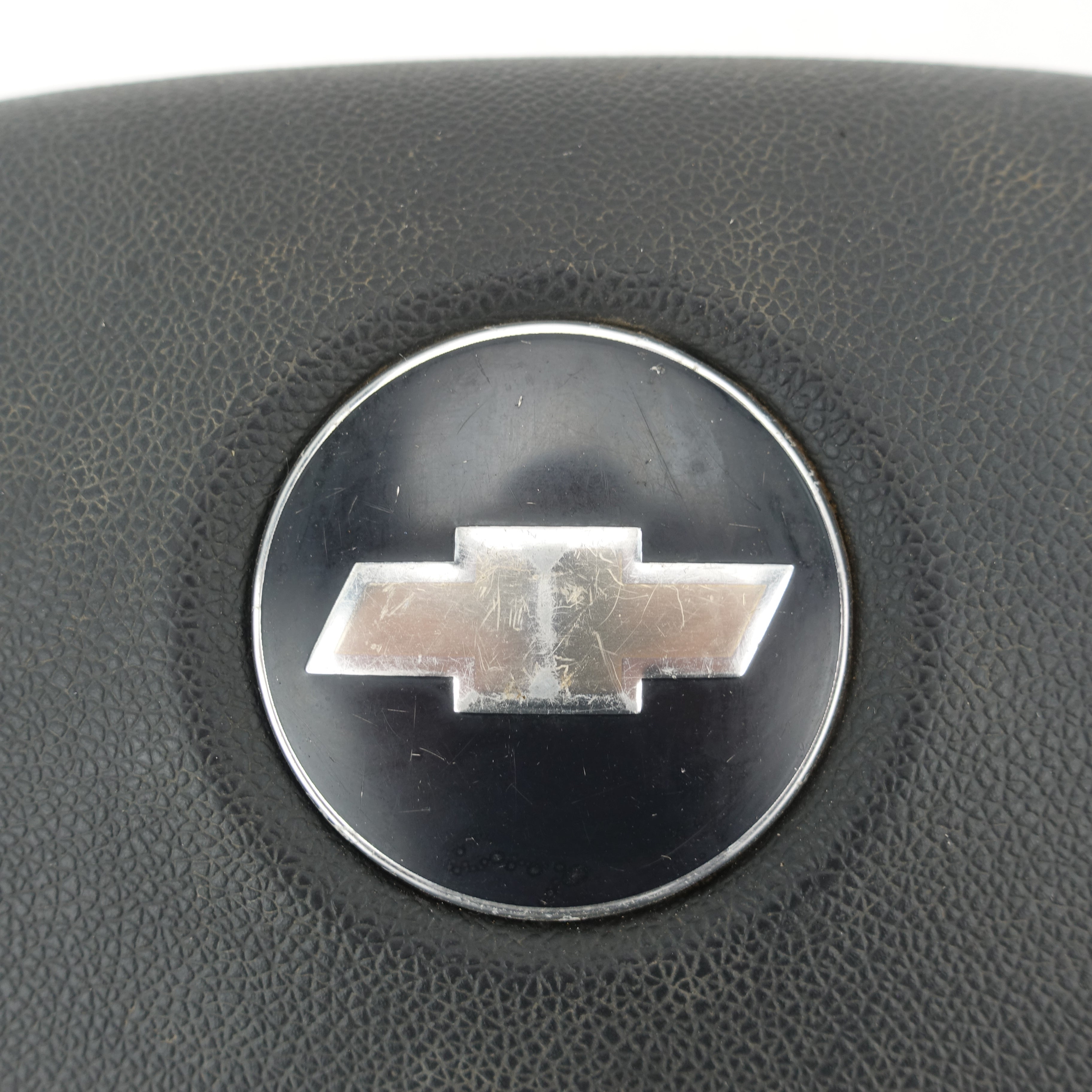 This is a lightly used airbag from a 2007 Chevy Silverado 3500. Some of the paint on the emblem is scratched off. The airbag has some dirt on its face that did not clean off.