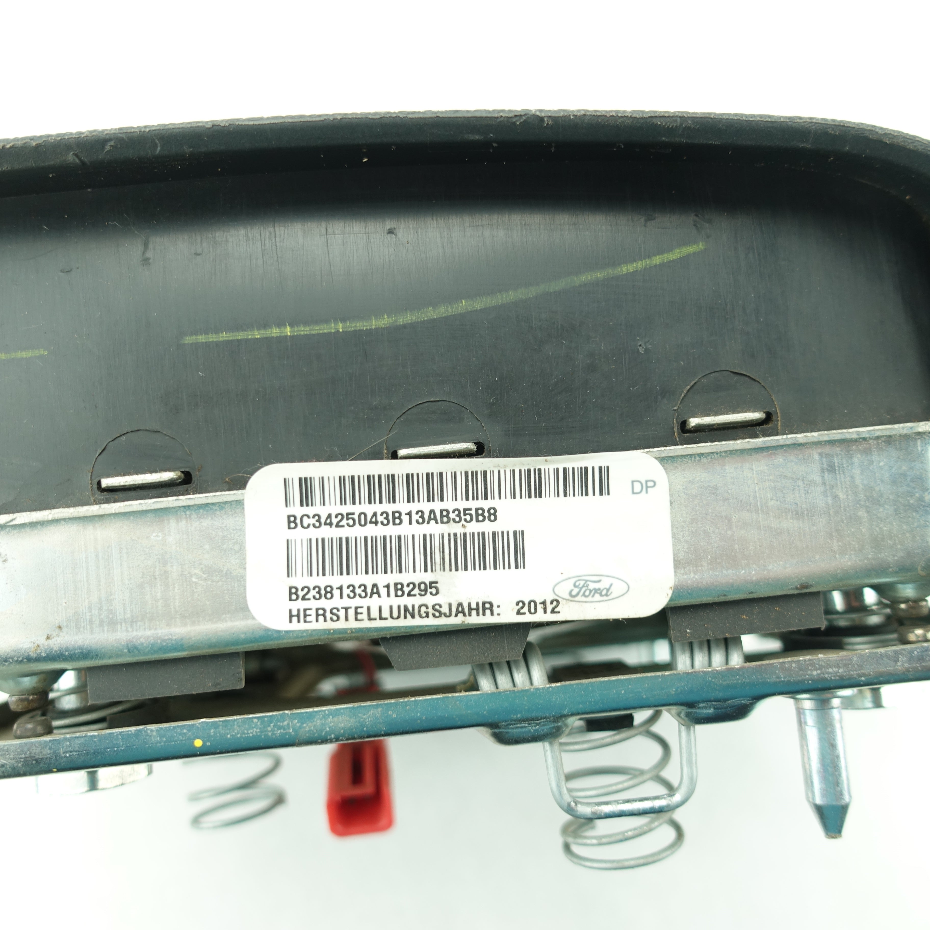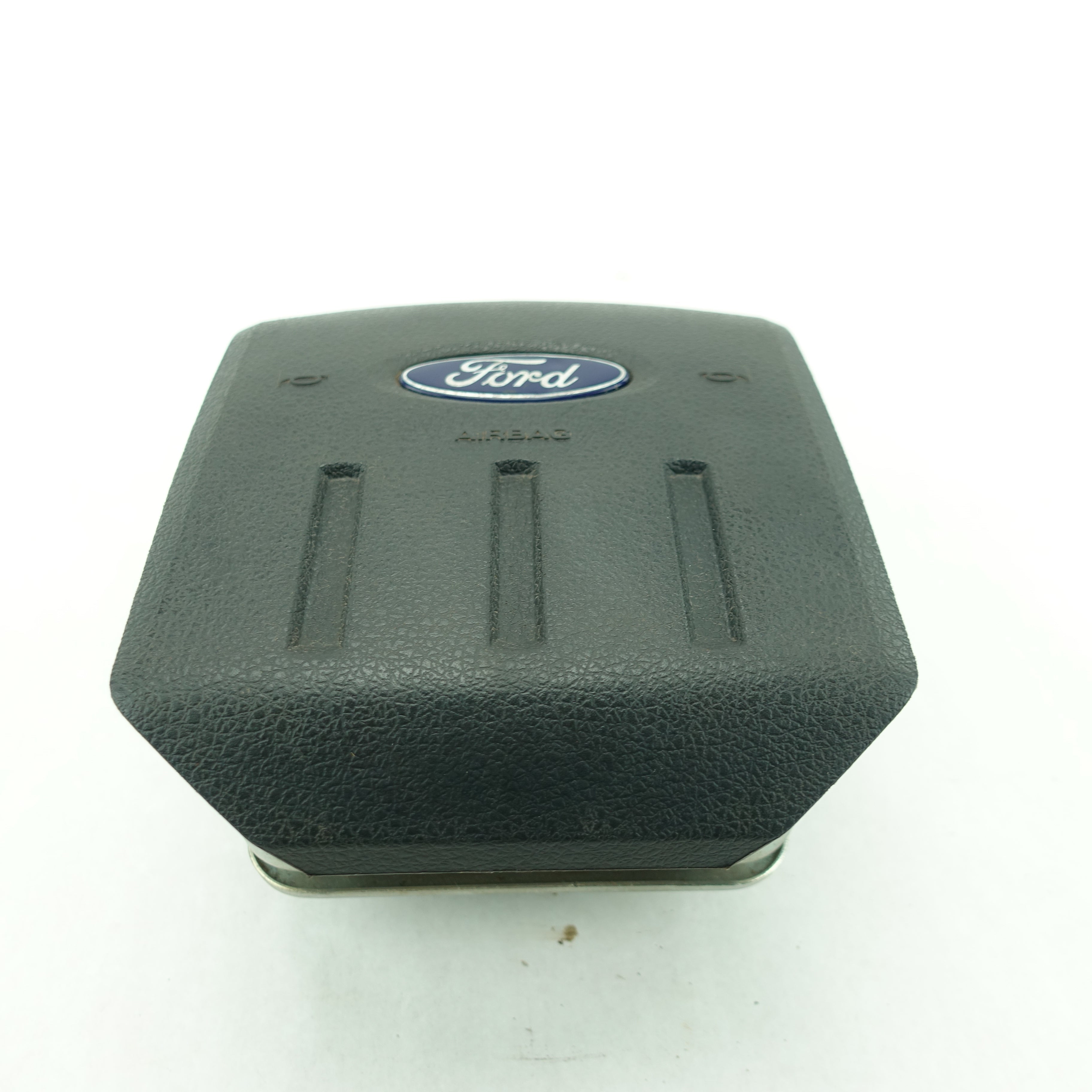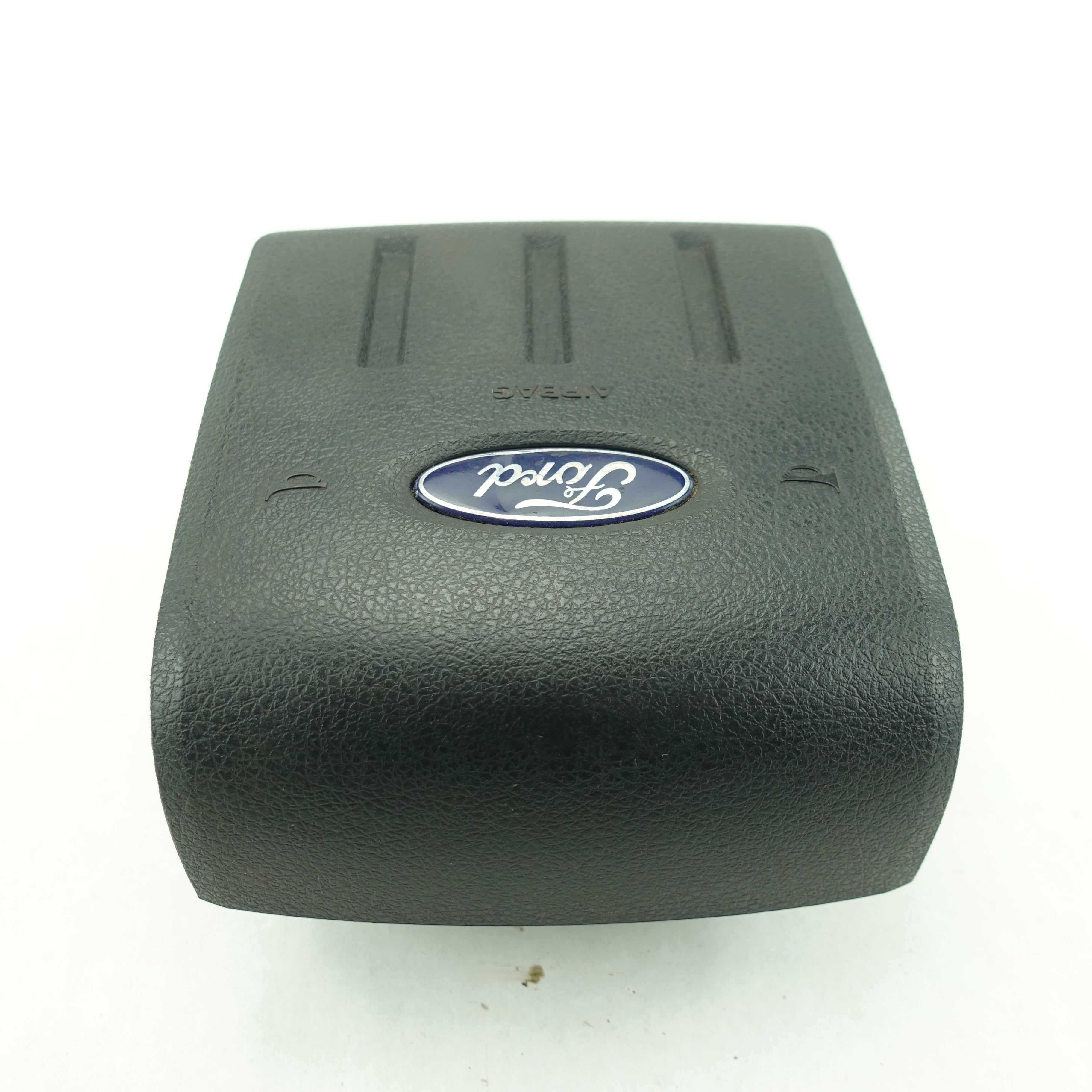 This is a used airbag from a 2012 Ford F250. The item has a dent on the emblem.