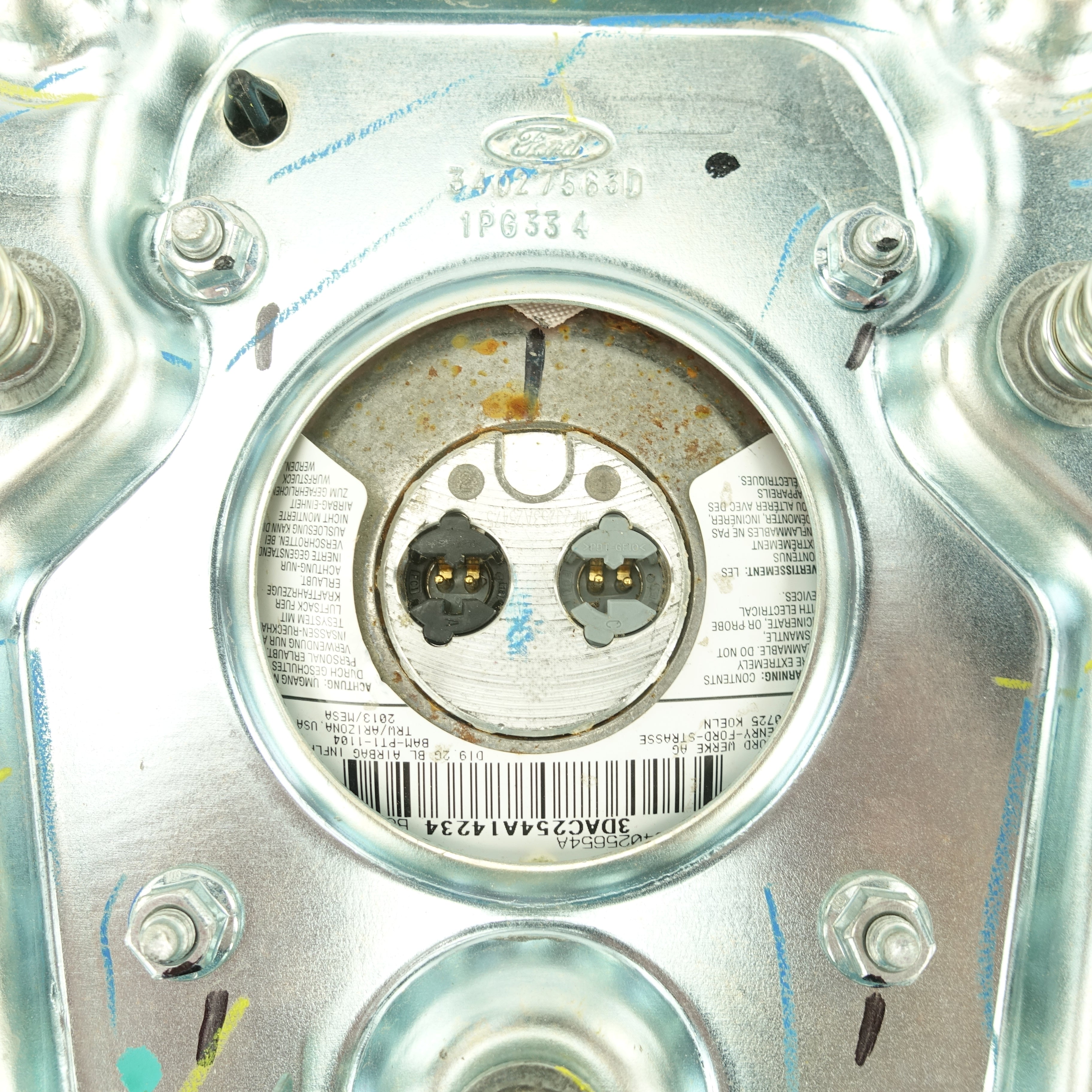 This is a used airbag from a 2012 Ford F150. The item has some scratch marks on its face.