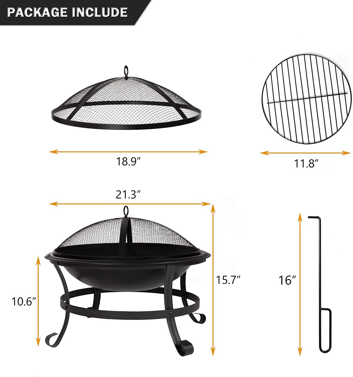 Easy to Use and Clean: The mesh cover with holes prevents the splash of sparks and ashes, and the poker can be easily operated to ignite the flame or remove the cover; the pot can be removed from the bottom frame for easy cleaning and storage.