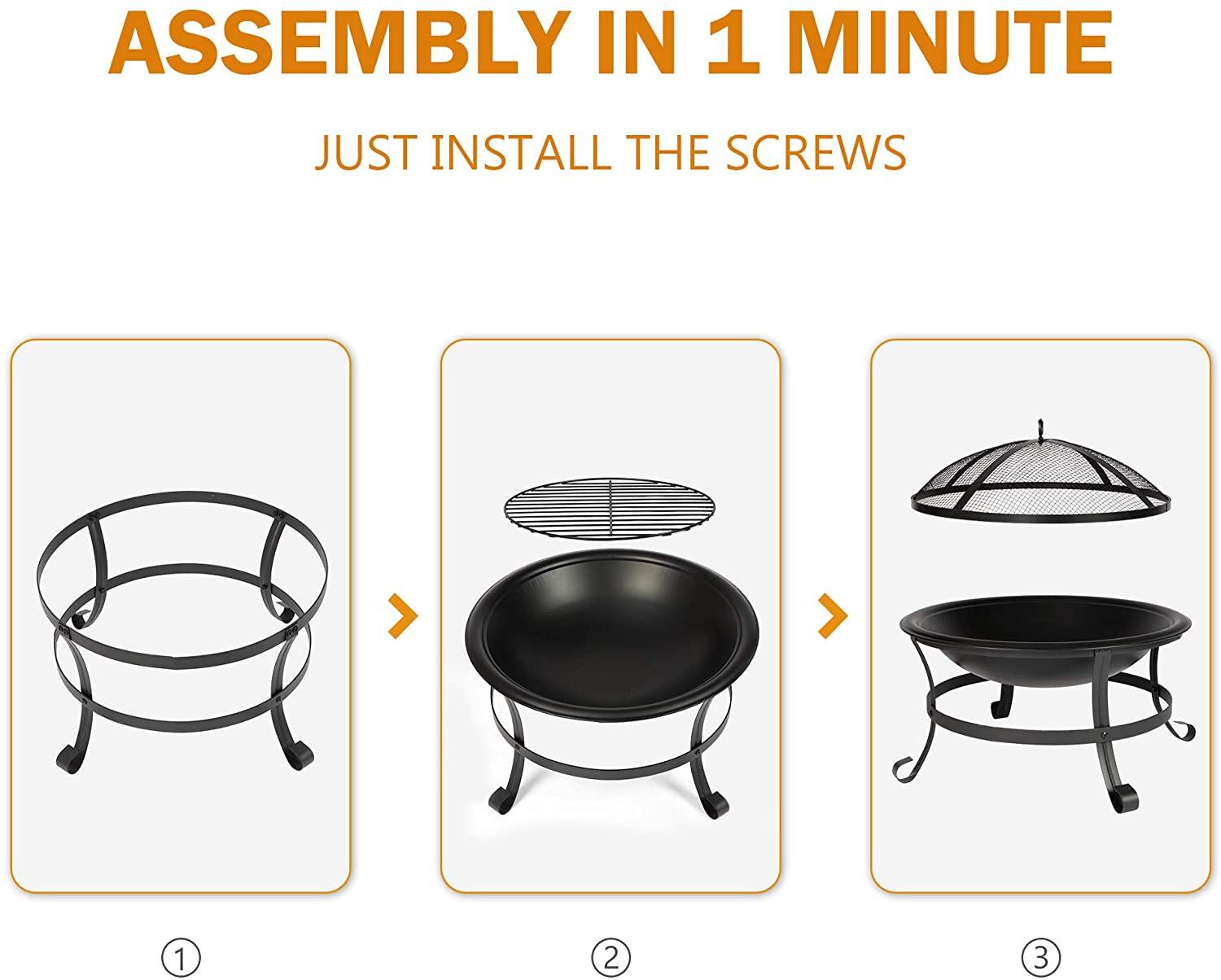 Easy Assembly: With the guidance of instruction, assembling was super easy and was able to fix outdoor fire pit together in little less than 2 min.