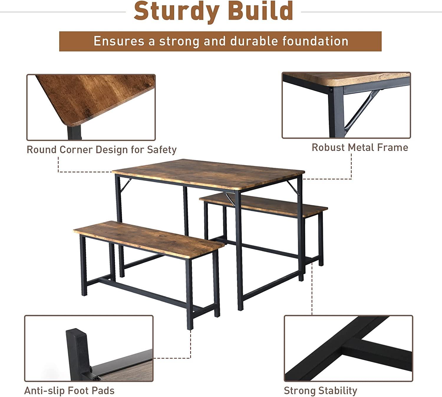 Space-saving Dining Table Set: Both two benches can be conveniently tucked under the standard height table for space-saving storage while not in use, this dining table set great solution for small spaces, small condos, small kitchens, studio apartments, and more.