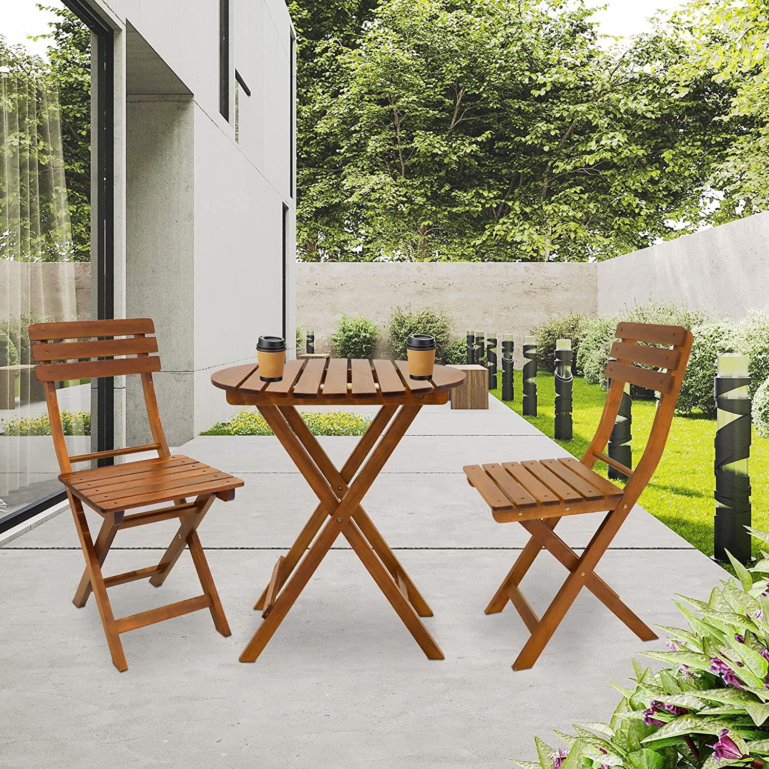 Functional: A 3-piece outdoor wood bistro set is functional and can be used for a variety of purposes, such as dining, reading, or relaxing. The chairs are often comfortable and the table is the perfect size for holding drinks and snacks.