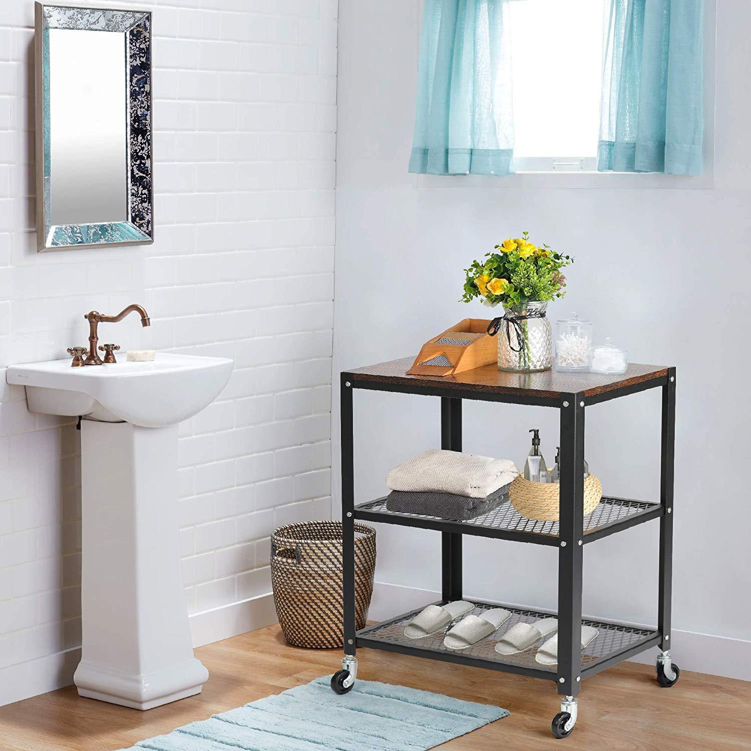 3-Tier Modern Style Storage Rack with Wheels - Steel Movable Storage Shelf and Display Rack in Black/Brown