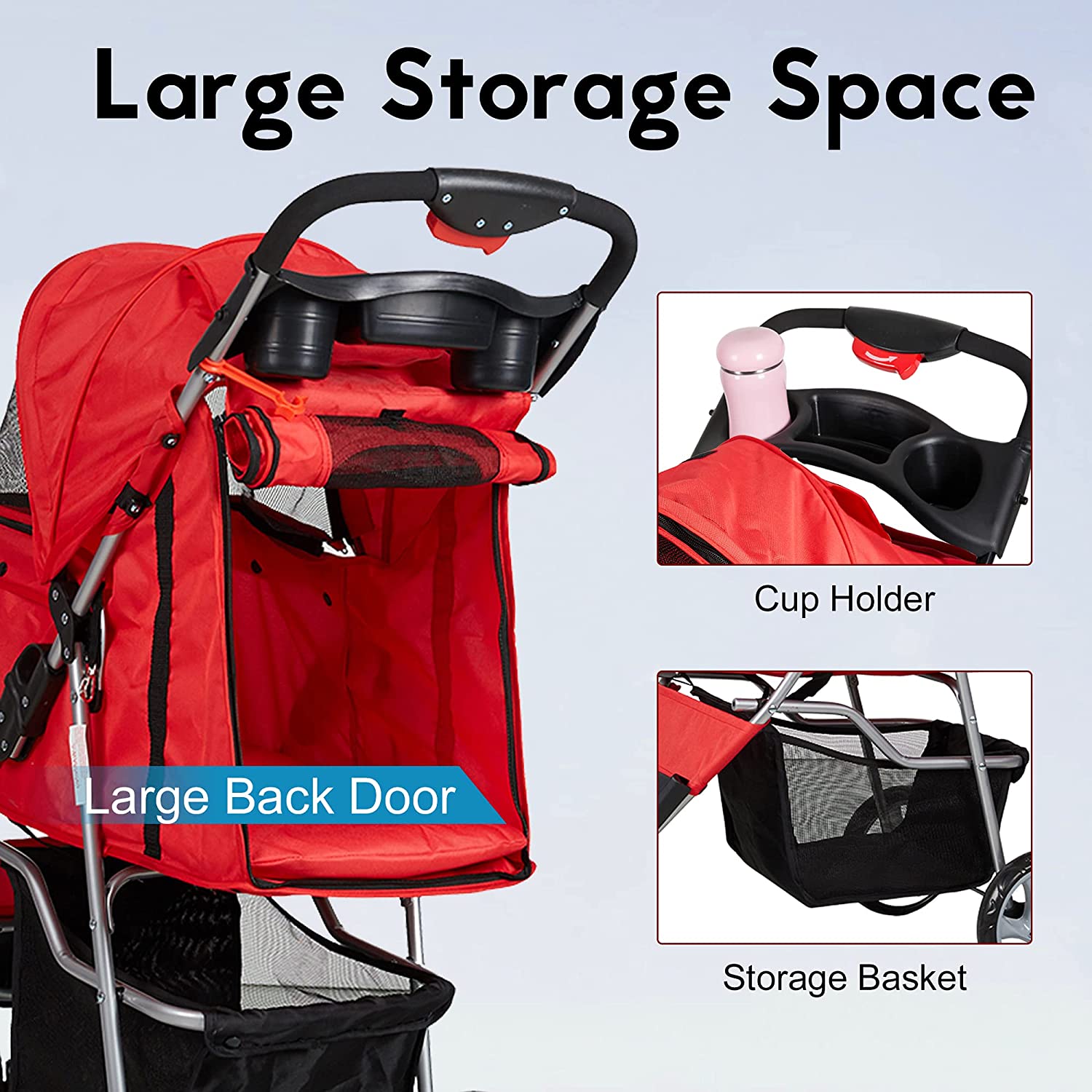 3 Wheels Pet Stroller for Dog Cat Small Animal Folding Walk Jogger Travel Carrier Cart, Red