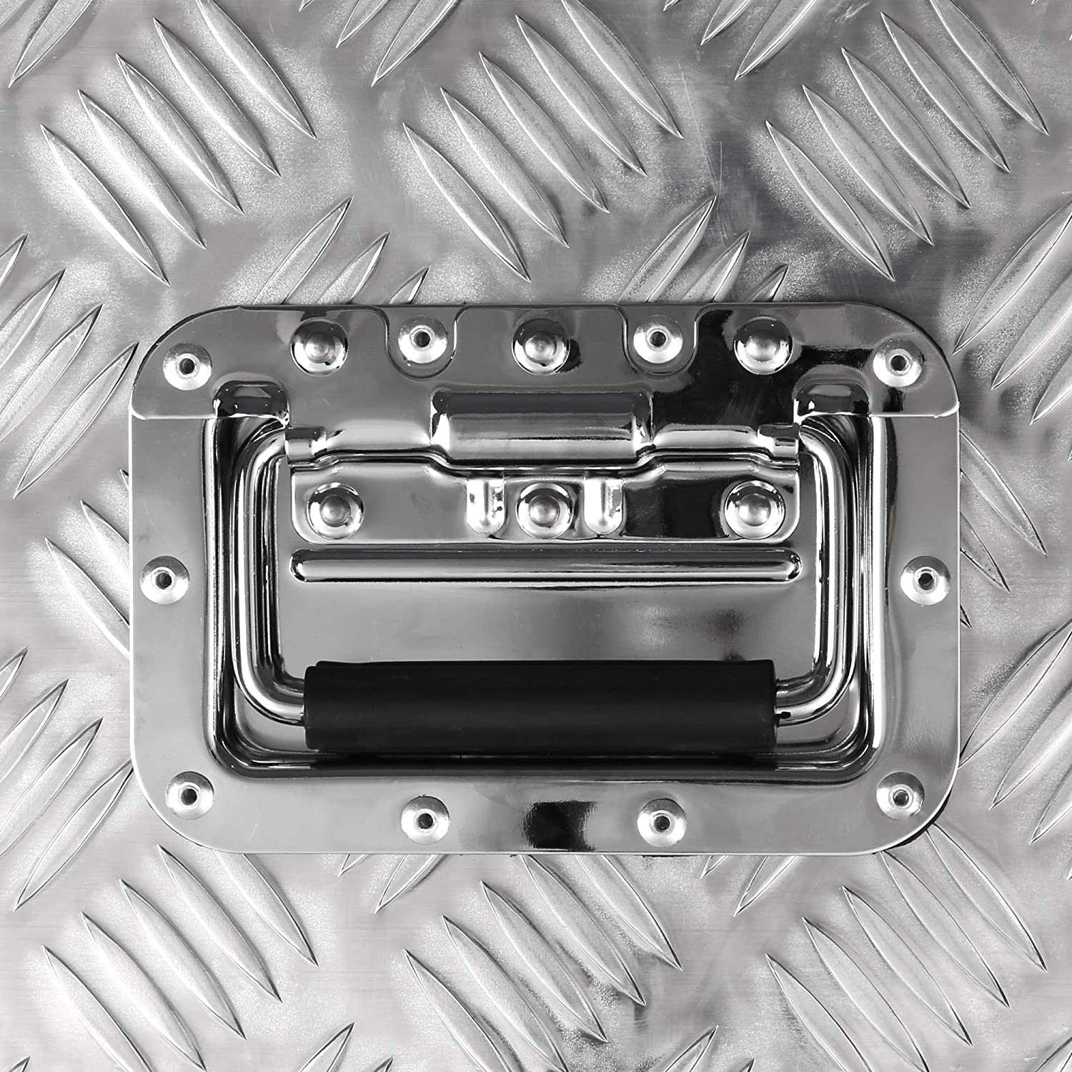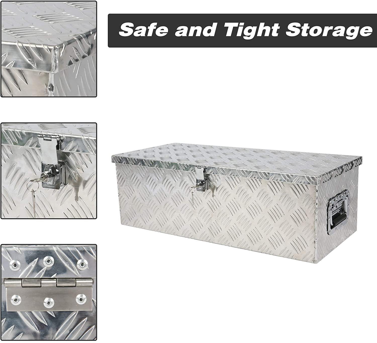 High Quality & Stable Structure: Made of Aluminum Alloy, trailer tool box is high-intensive & corrosion-resistant; durable for all weather. 5 bar tread pattern enhance the strength of the aluminum, thereby achieving maximum durability.