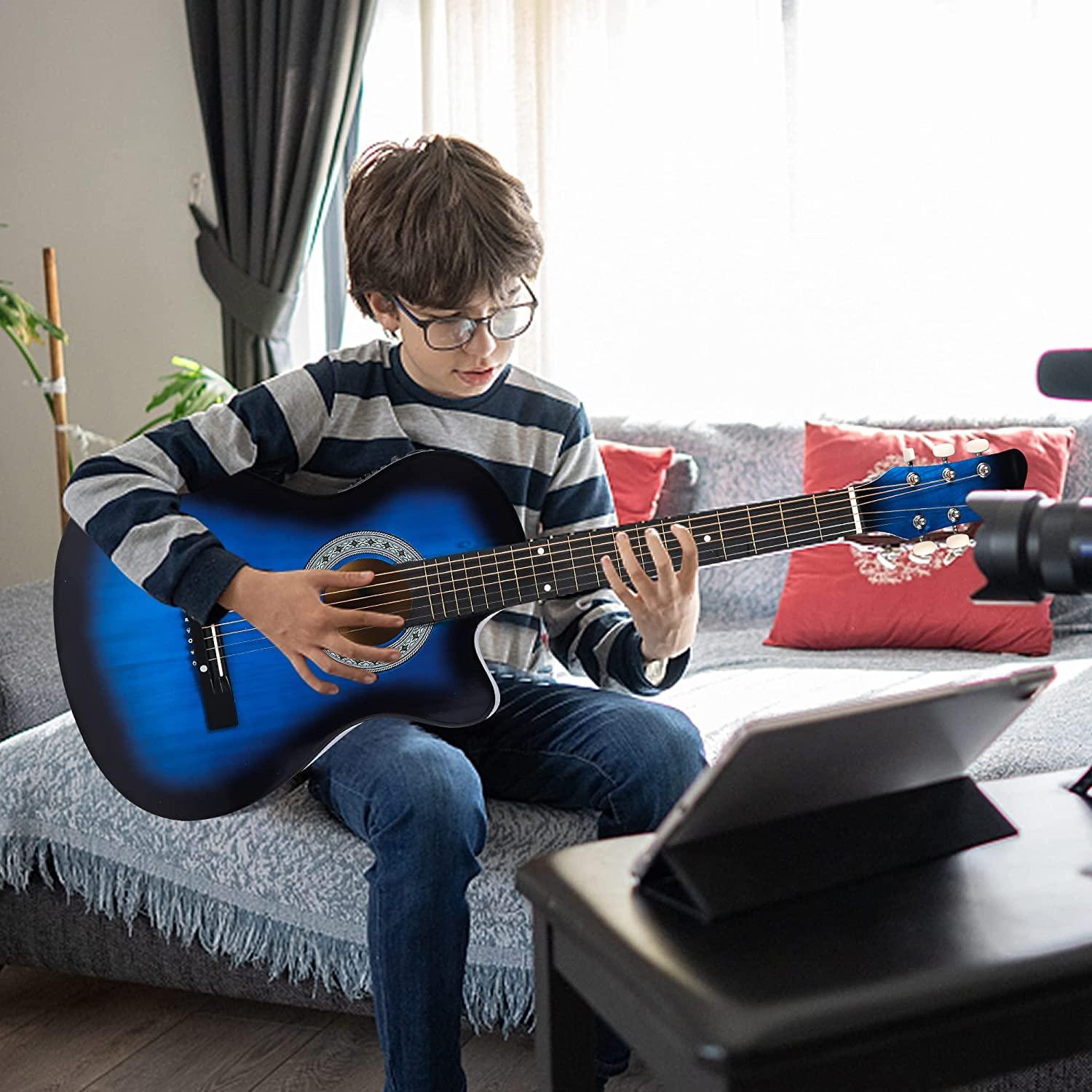 Versatility in Use: 38" Acoustic guitar Kit, complete accessories. Whether you are a beginner or an experienced person. All are available out of the box. The size is moderate. It can be given as a gift to children and is great for teens and adults. Full sound and rich timbre, perfect for all styles of music.