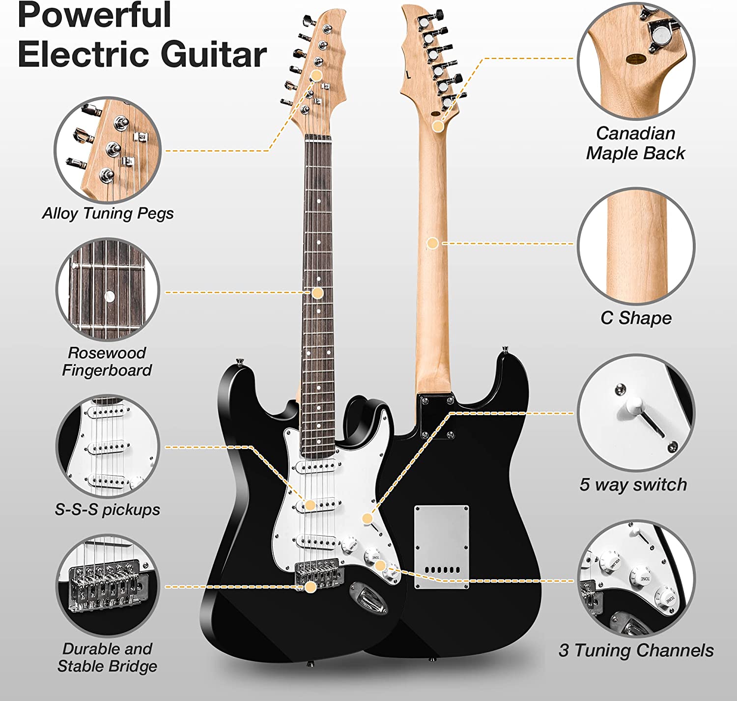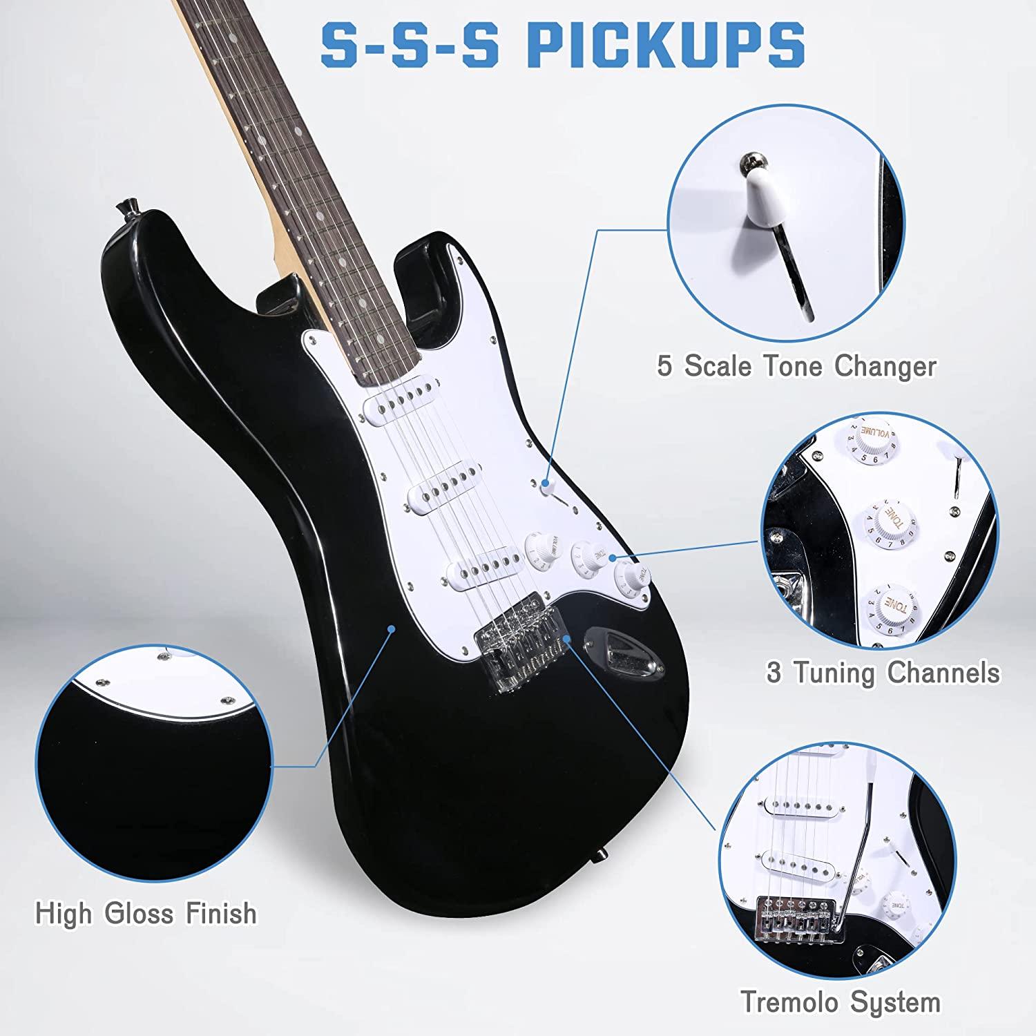 39.5" Full Size Electric Guitar Beginner Starter kit with 10w Amplifier, Black