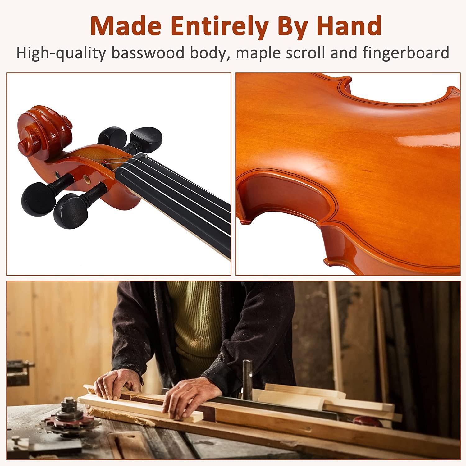 Fine Workmanship: The kid's violin full size is carefully handcrafted by experienced violin makers, we provide the same vertical line as a high-grade violin, and the hand feeling is great.