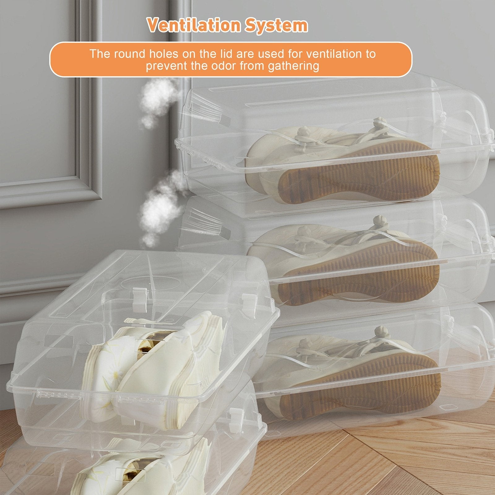 - Made from premium plastic material, these shoe boxes are durable and not easily deformed. The thoughtful breathable design helps prevent odors, ensuring your shoes stay fresh and clean.