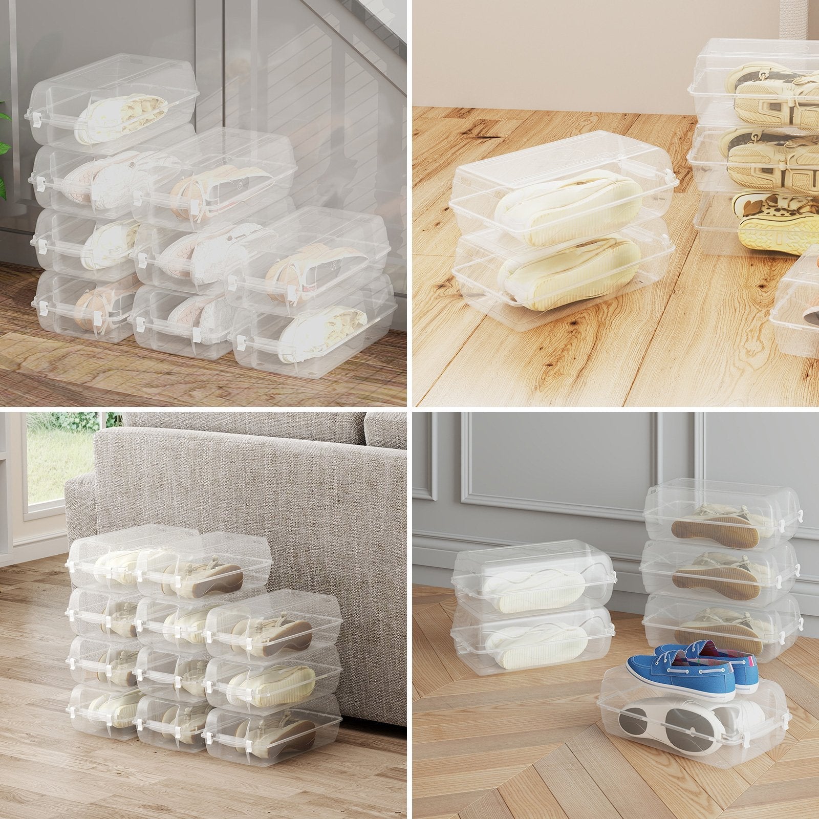 Package Includes: 4 shoe storage boxes