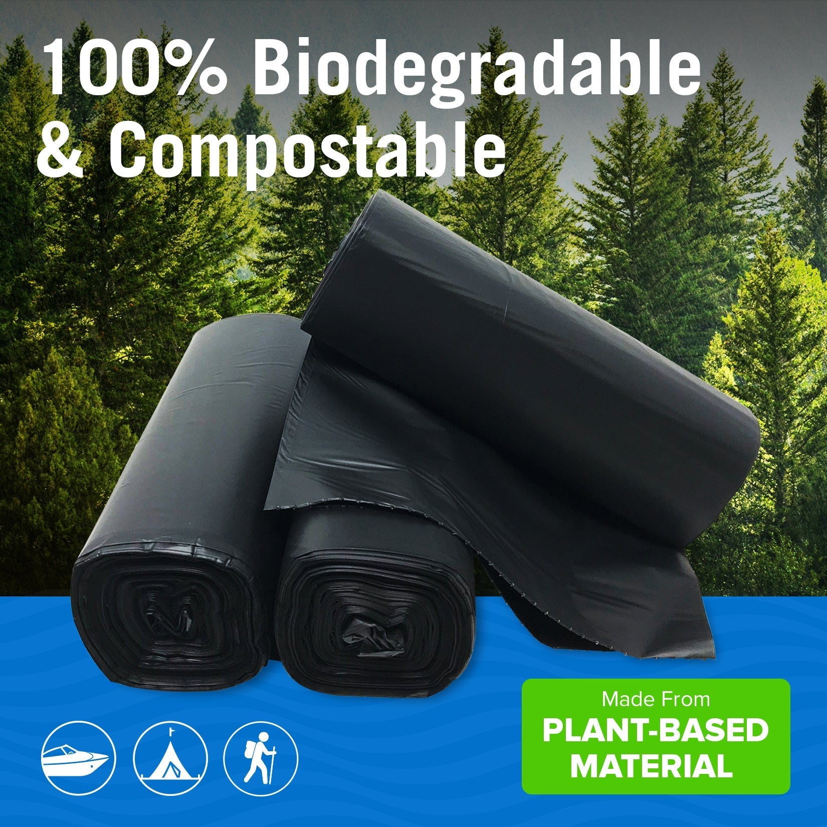 Our eco-friendly compostable waste bags are made from plant-based materials that are 100% biodegradable and break down fast. These thick, ultra-strong compostable toilet bags fit most portable toilets and are leak-proof to make clean-up a breeze. 3 rolls of 8-gallon bags come in a pack for a total of 45 bags. Try them risk-free for 30 days - love them or get your money back! NOT for sale to CA Residents