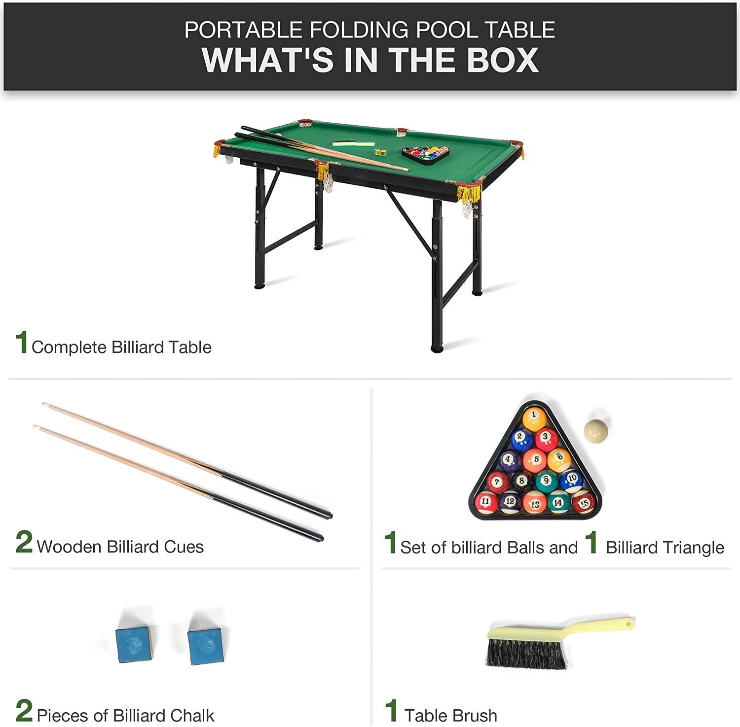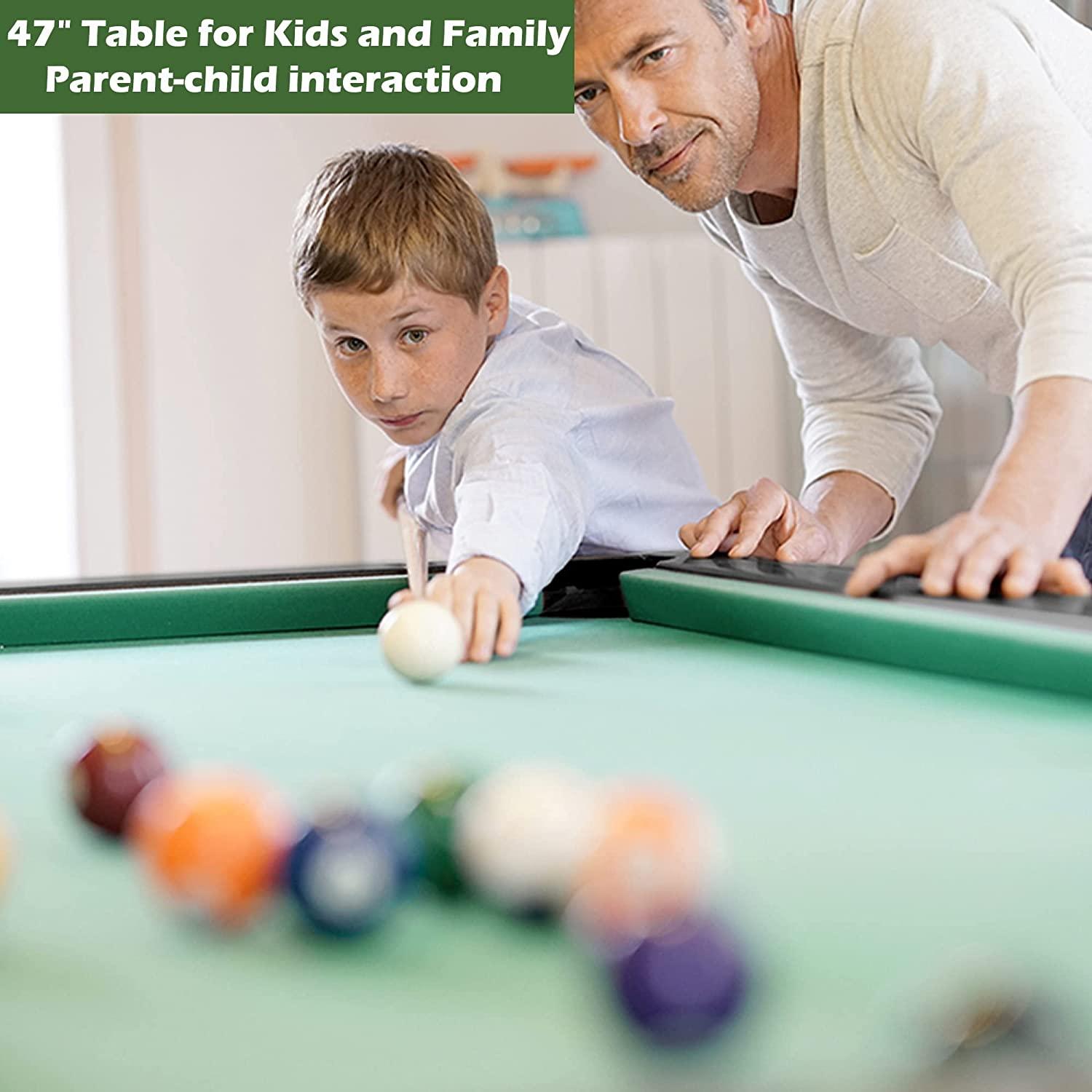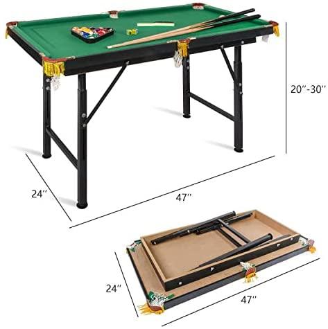 47" Folding Portable Billiard Table for Kids and Family - Pool Game Table with Cues, Balls, Chalk, Cleaning Brush, Tripod - Home or Office Play Fun