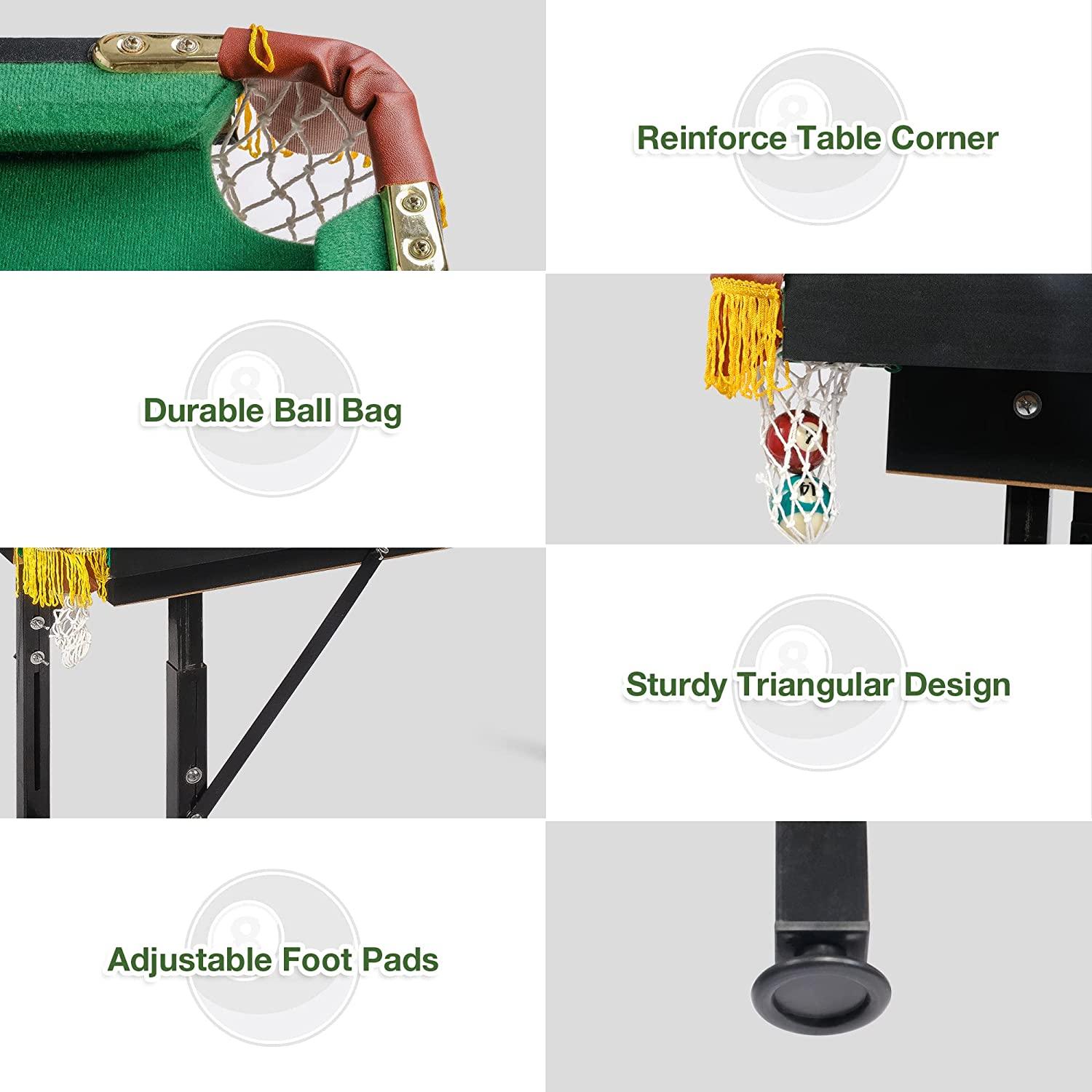 2. Authentic look and feel: With an authentic green felt covering and bumper cushions, you will feel like you' e playing on a full-sized table, only smaller.