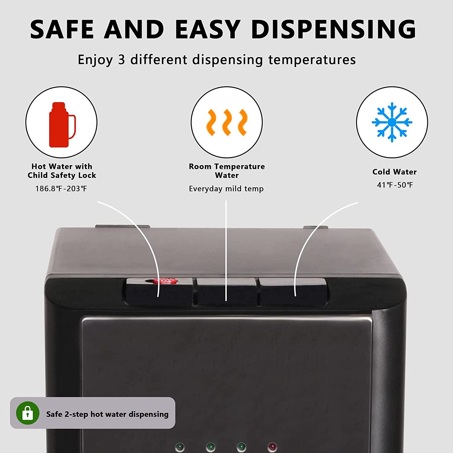 5 Gallon Bottom Loading Water Cooler Dispenser with 3-Temperature & Child Safety Lock, Black