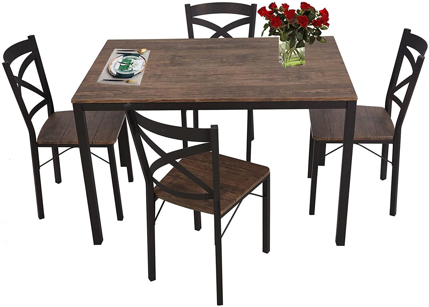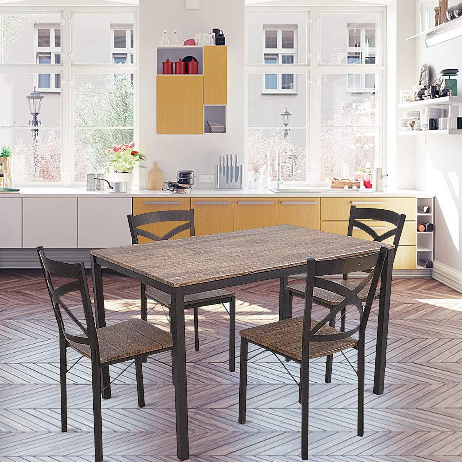 Unique and Functional: With 1 rectangular table and 4 dining chairs combination as a set, ideal for kitchen and dining room, all your family can enjoy your time together, also it can be placed in restaurant, bistro, coffee shop and other lounge bar area; The retro design makes this dining set very classic and stylish, it will never out of date