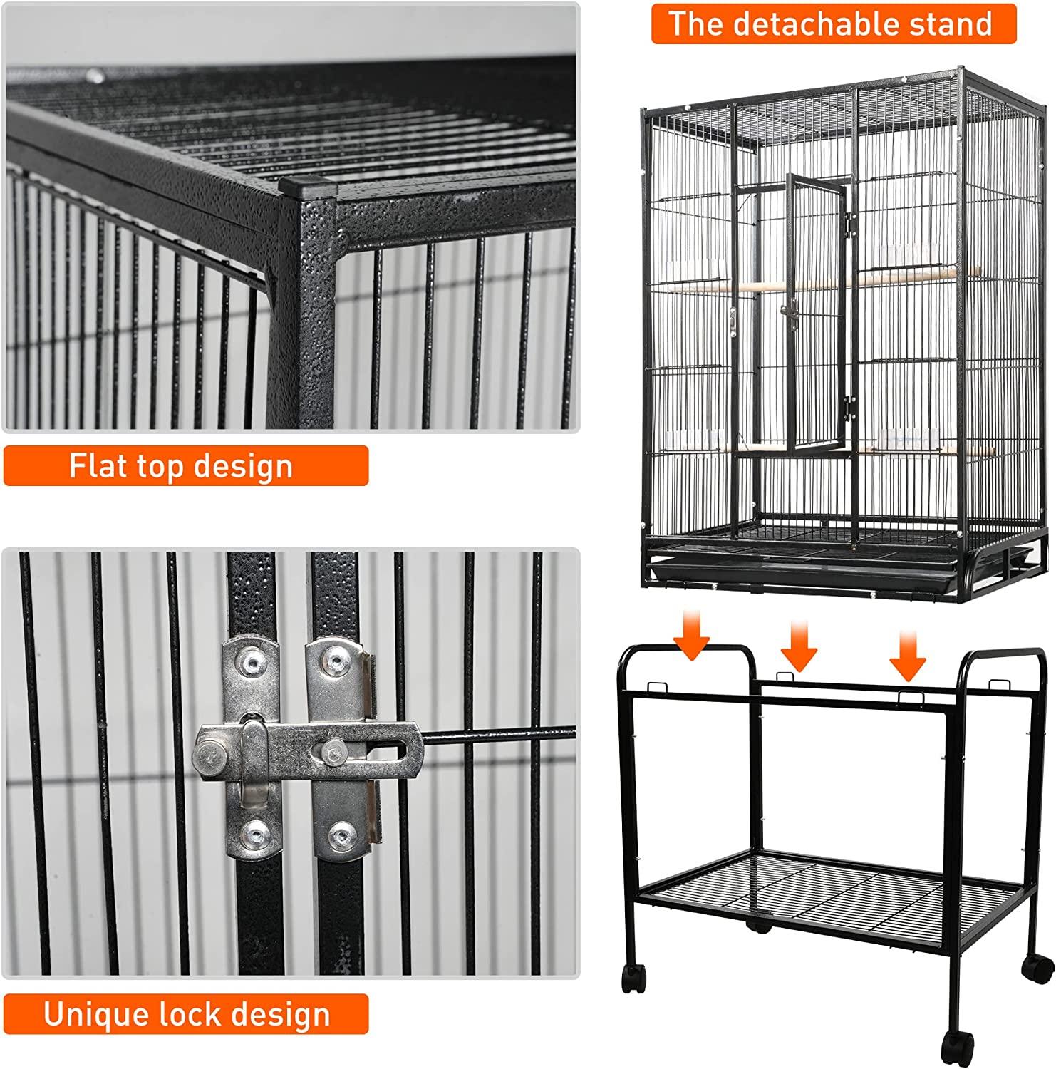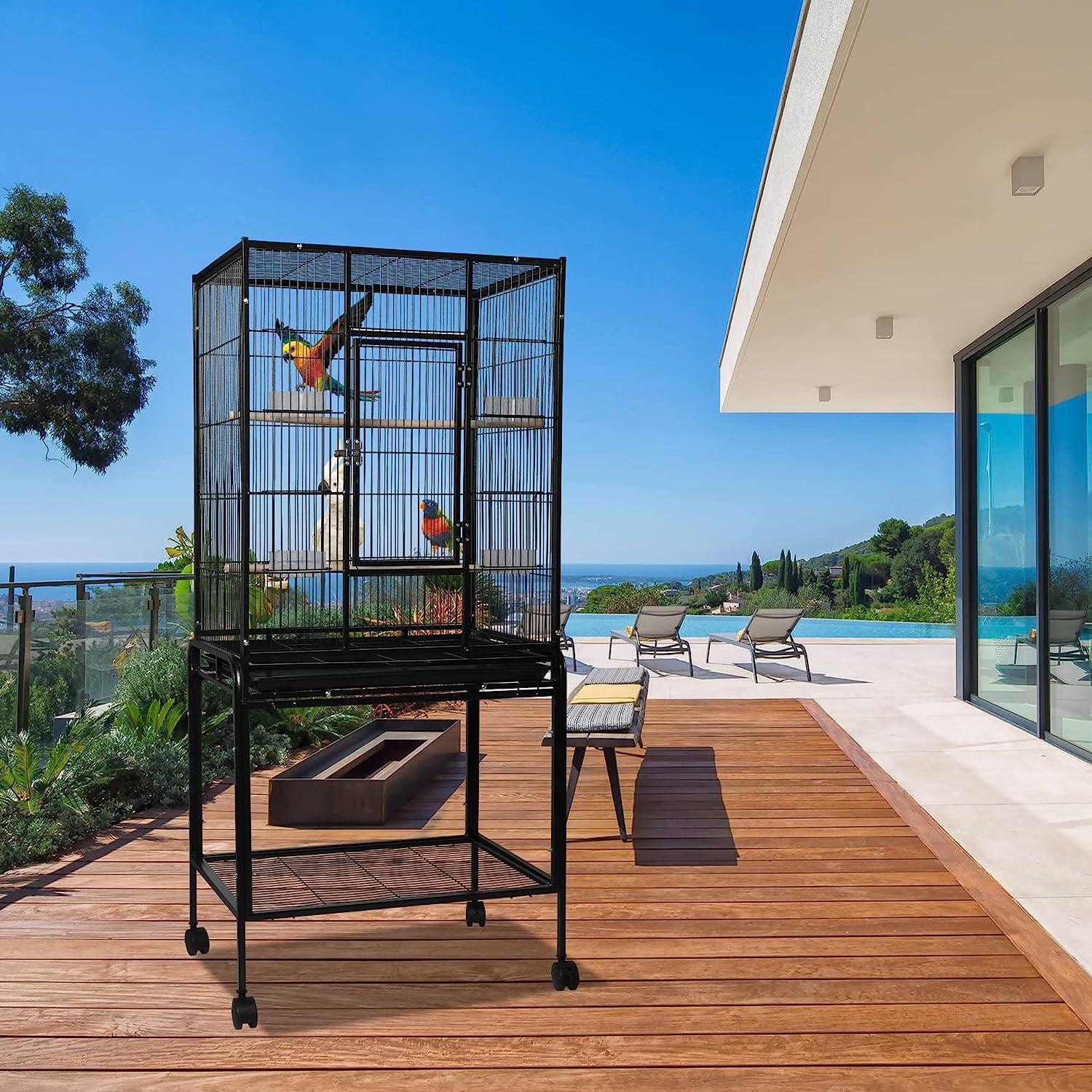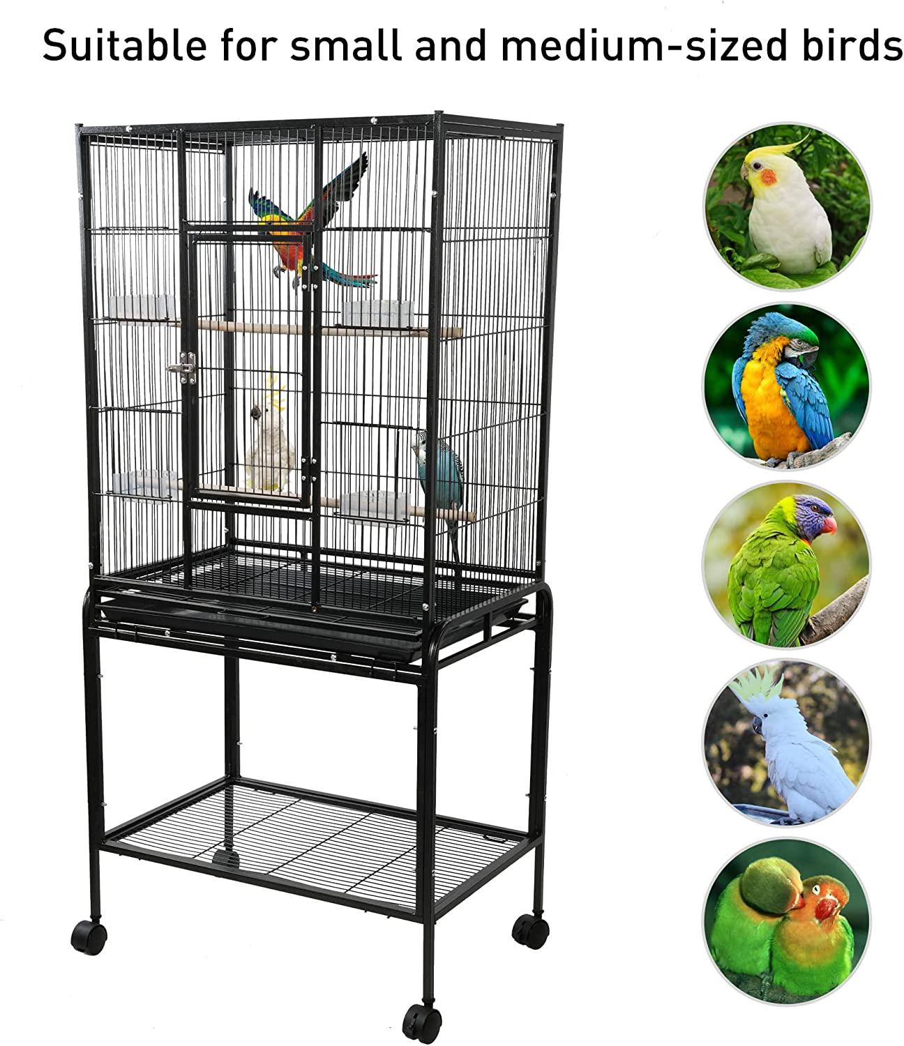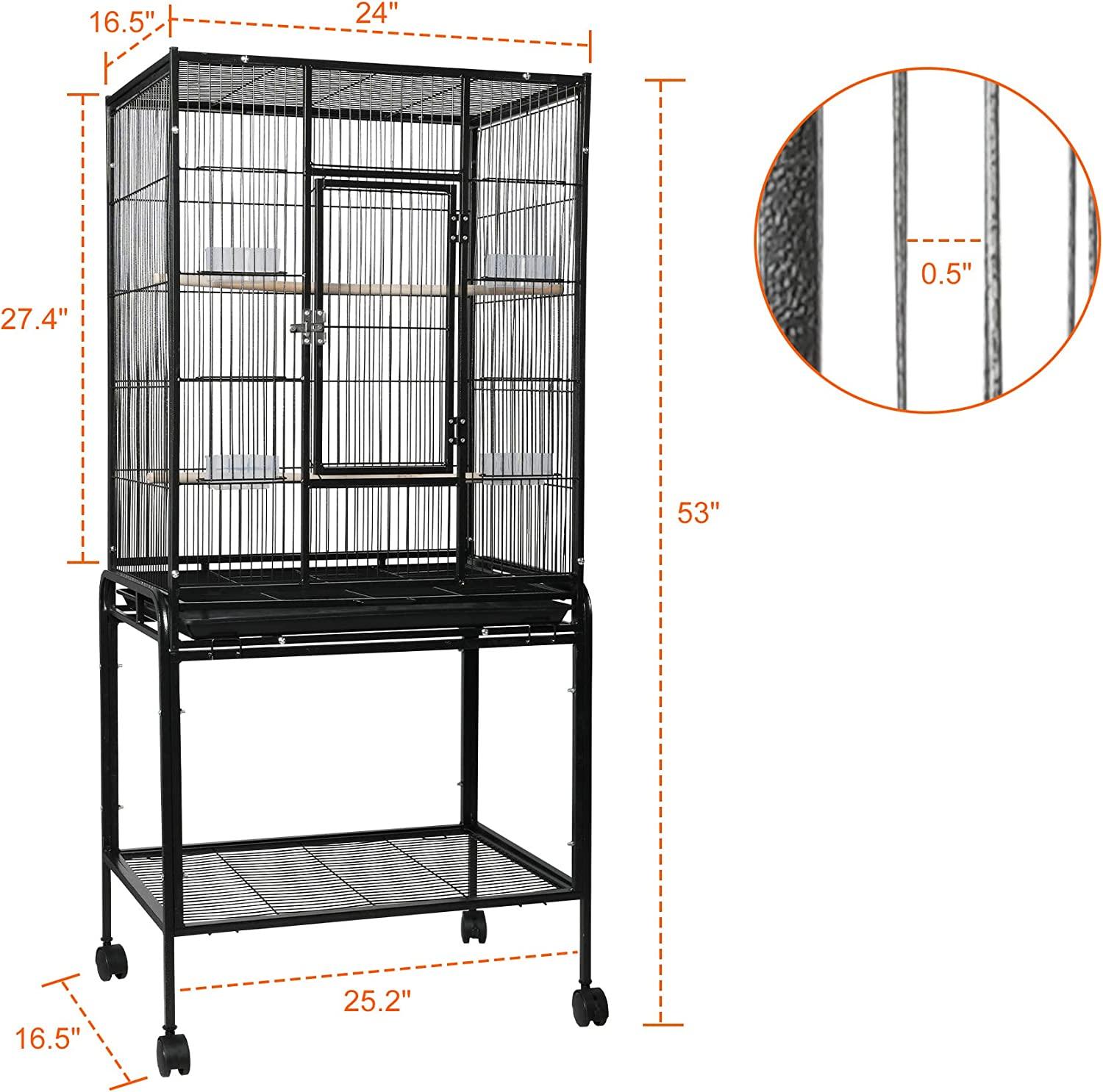 Ideal for various Birds: Overall Dimension of this parakeet cage is 16.5"L x 25.2"W x 53"H, which can provide a spacious flying space for birds exercising or playing, and you are free to add more perches or toys as you’d like to decorate the bird cage.