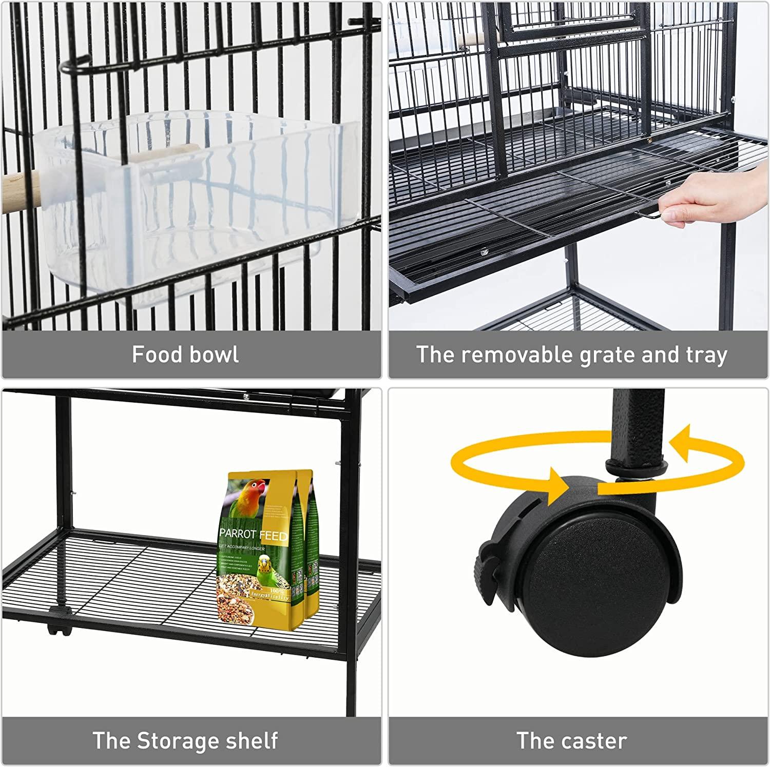 Easy Cleaning: Birdcages feature a clean, hygienic slide-out tray that can be smoothly pulled out for cleaning & feeding. Additionally, all shelving can be easily removed for easy cleaning, to keep your bird’s home fresh and clean at all times as well as keep your pets safe.