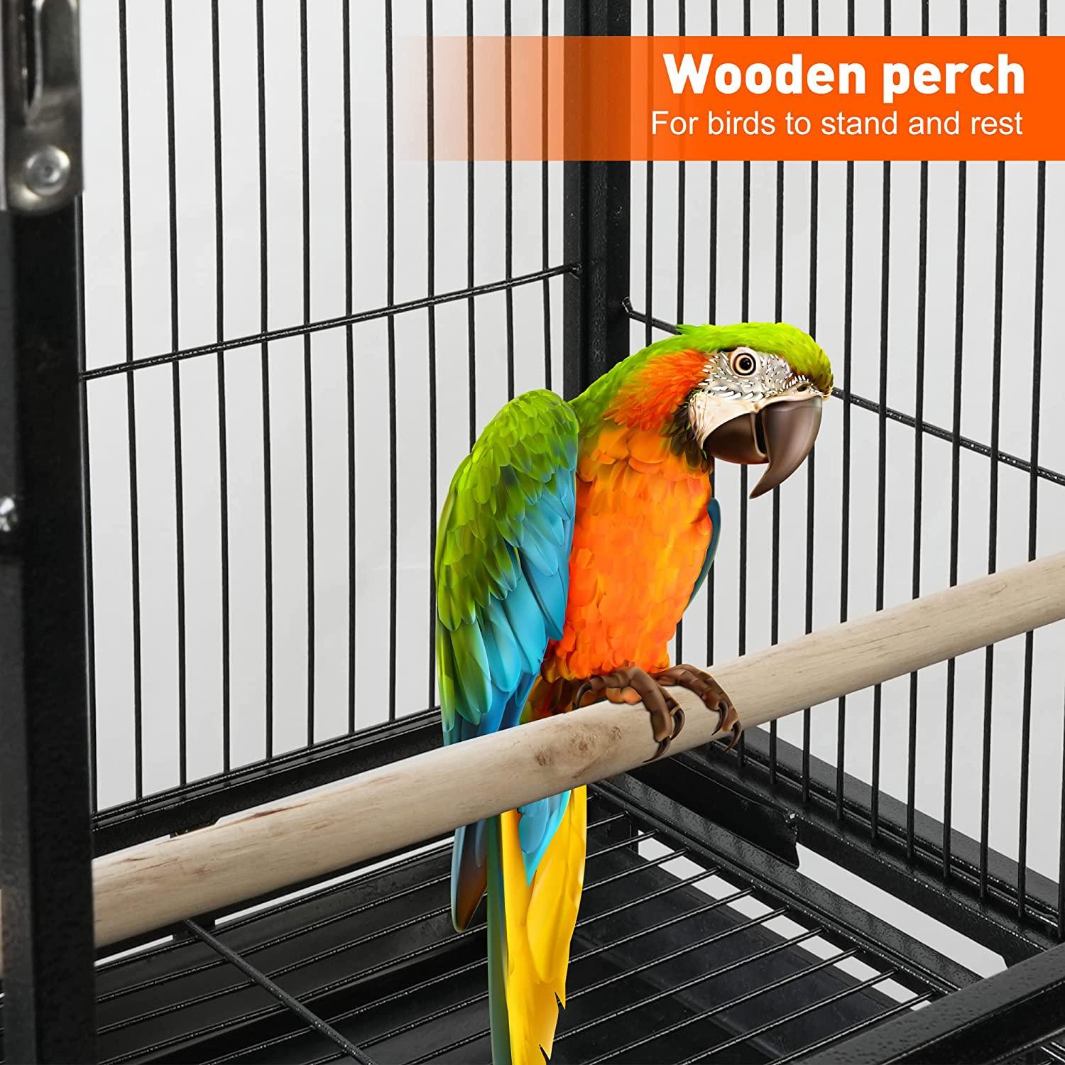 Bird Cage Accessories: We provide you with 4 removable food trays for feeding and 2 solid wood perches for birds to stand and rest. (With an easy-to-clean plastic base, and the sanded wooden perches are safe for the bird’s claws.)