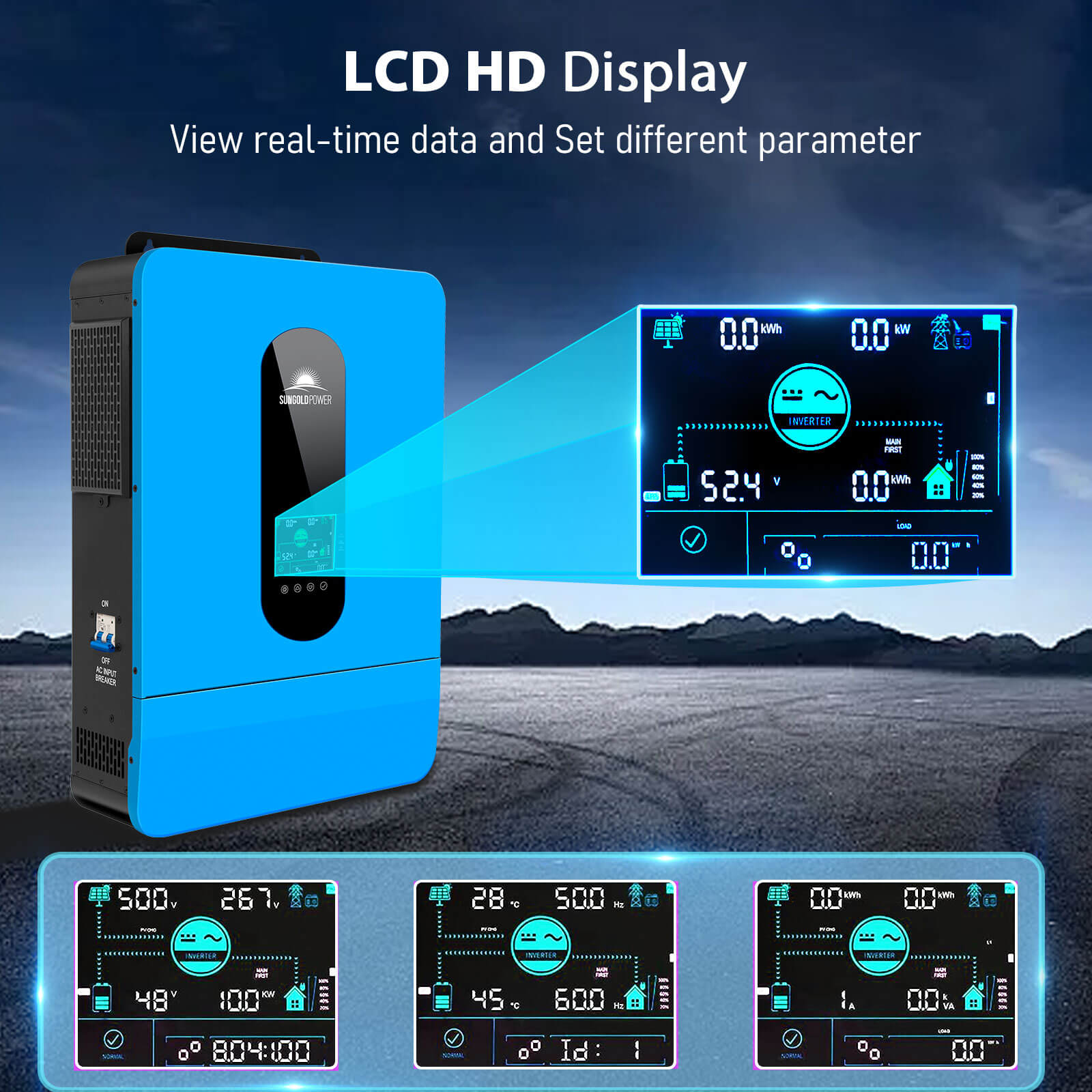 - ★ Battery type: 48V AGM/Sealed, Gel, Flooded, Lithium batteries and a User Mode to work with all battery types, and supports battery-free. When the lithium battery is dormant, the mains power and photovoltaics can activate the lithium battery. The 48v split phase inverter supports CAN and RS485 communication with SunGoldPower batteries.