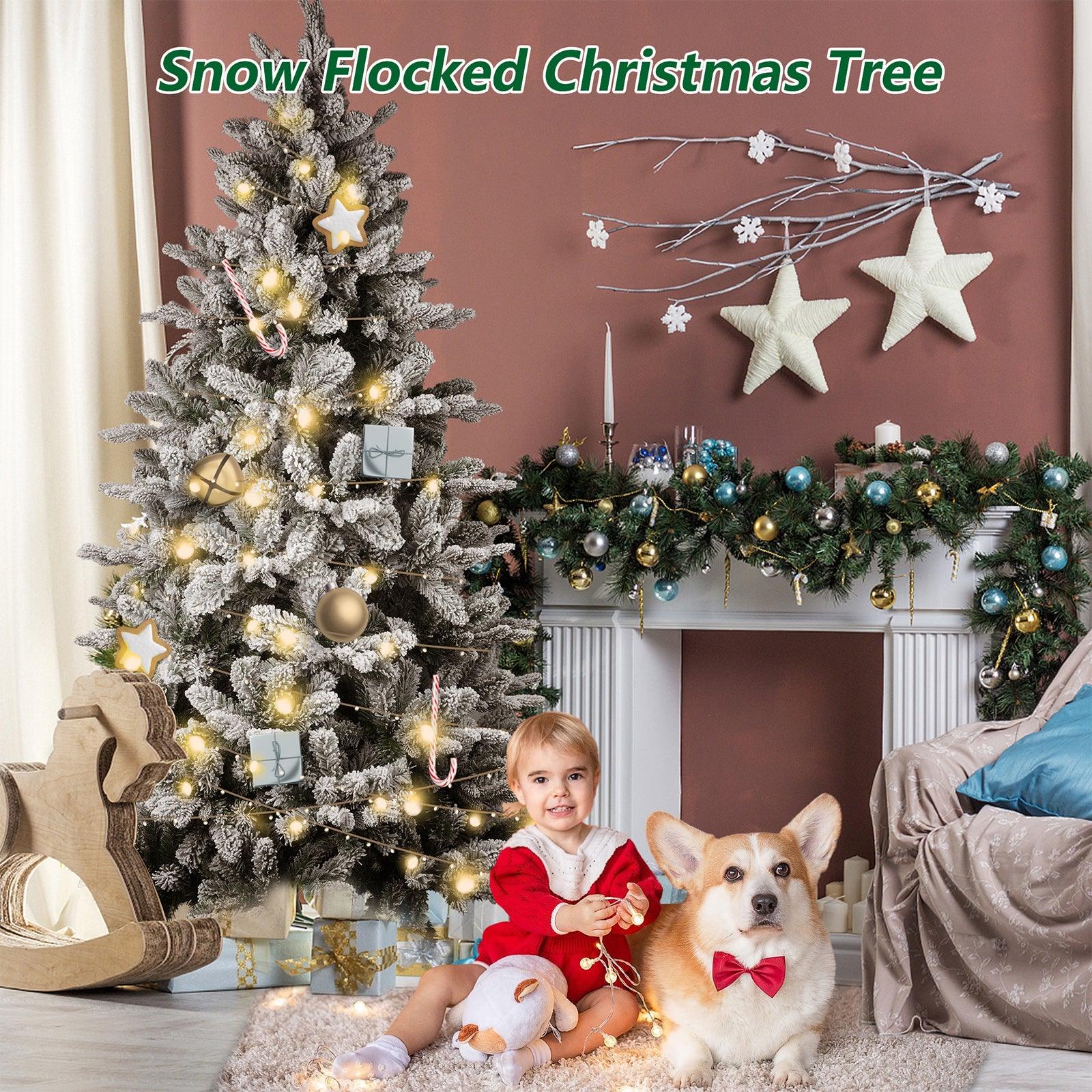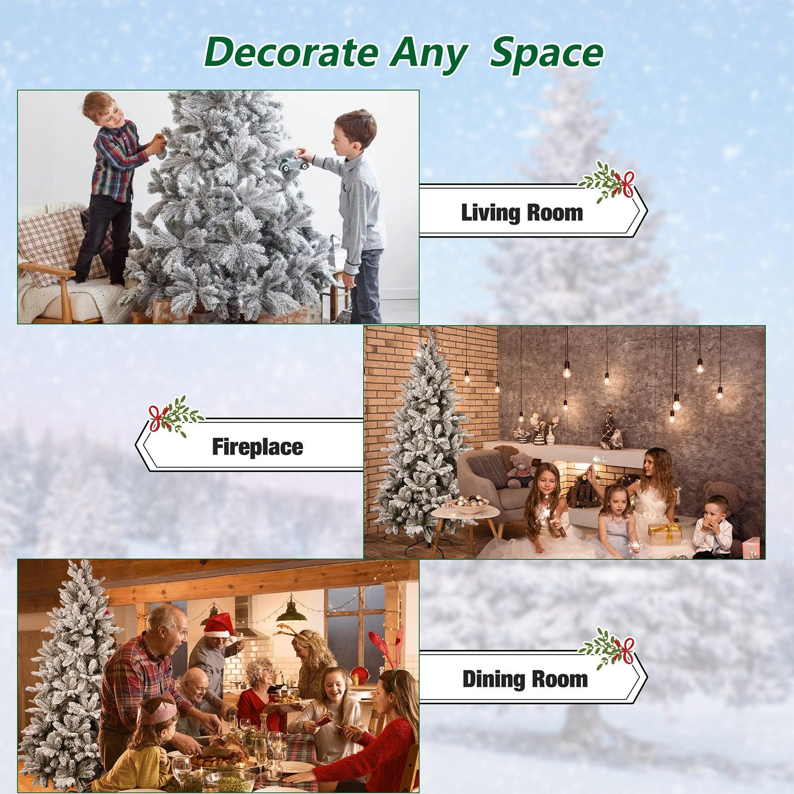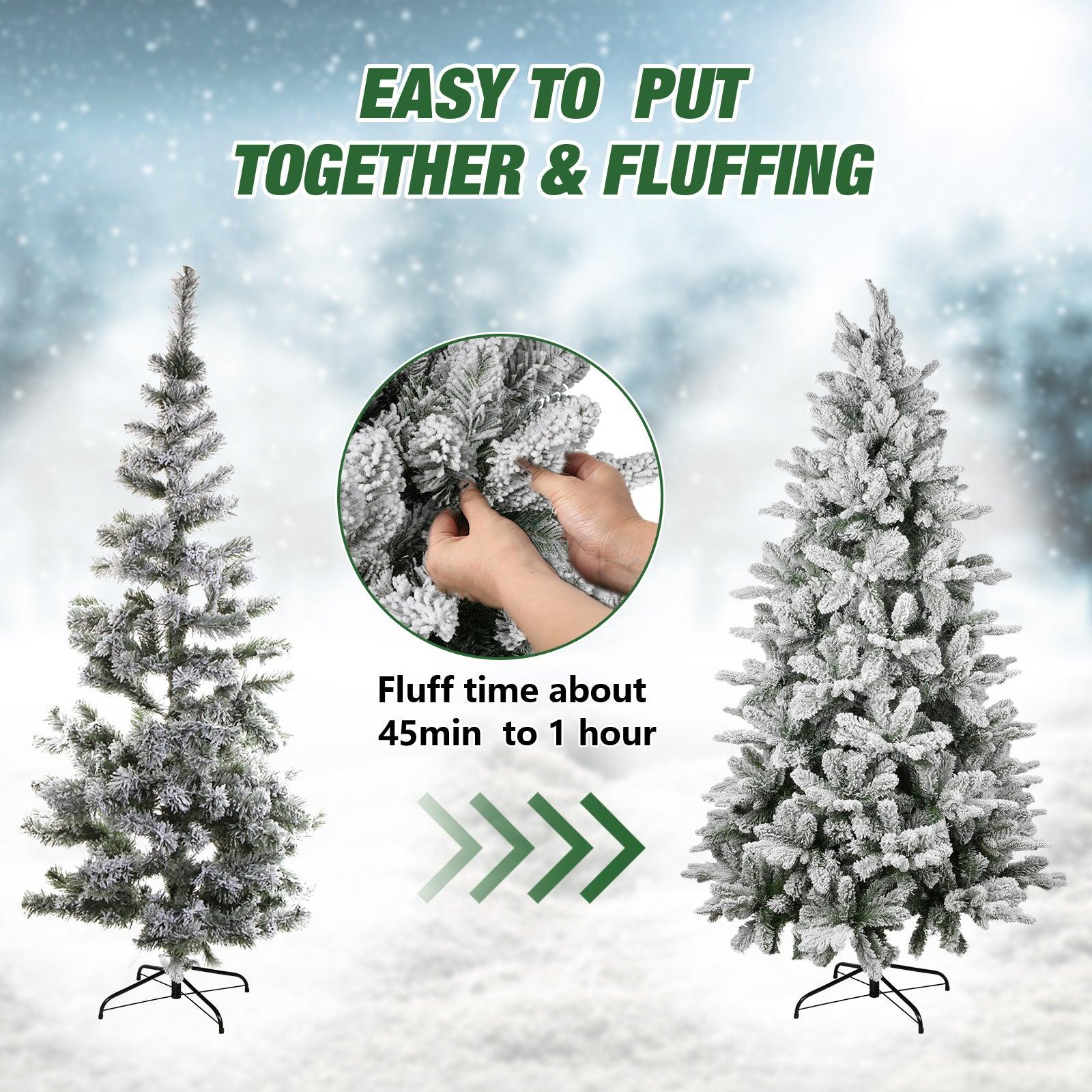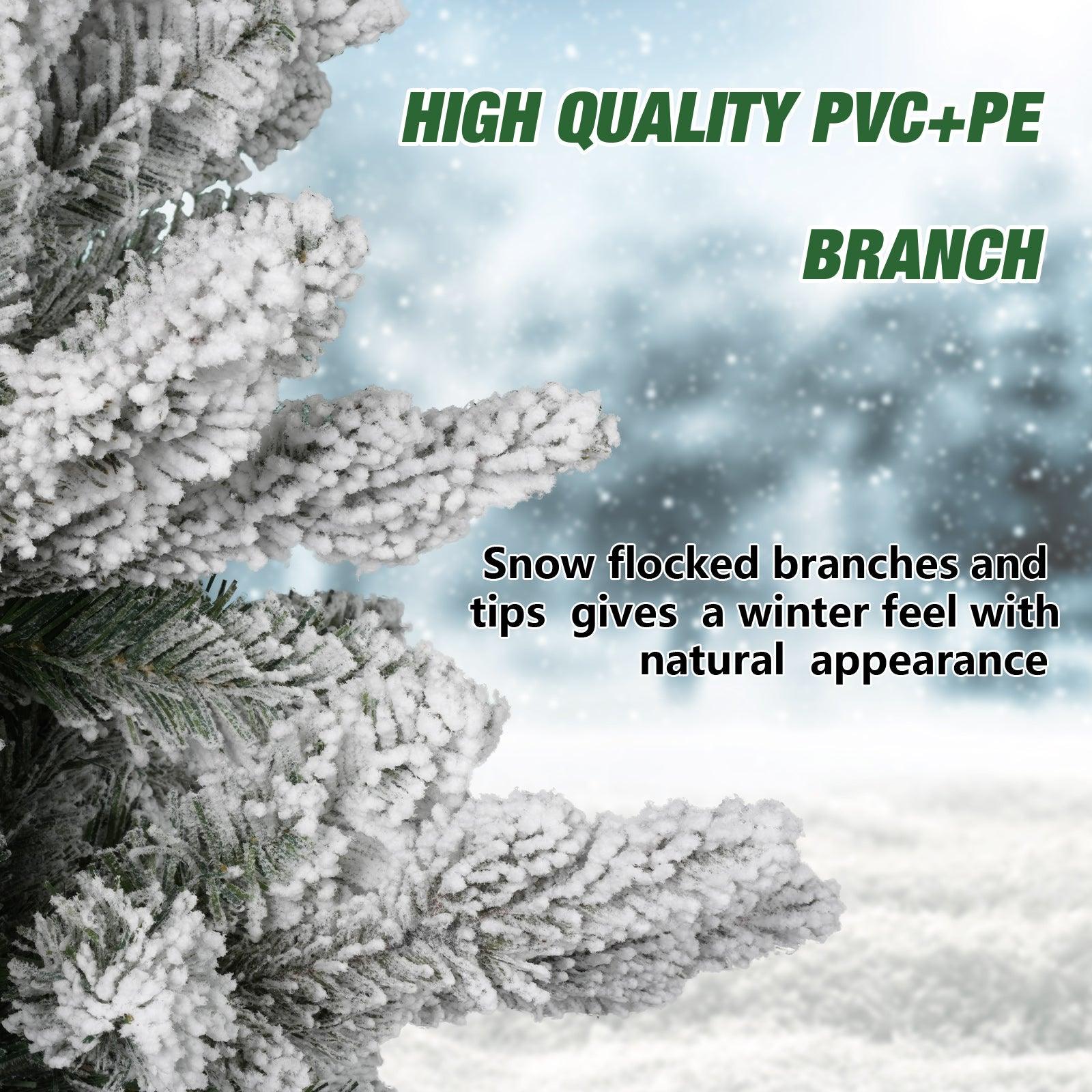 6.9' Artificial Christmas Pine Tree Snow Flocked Xmas Tree with 950 Branch Tips