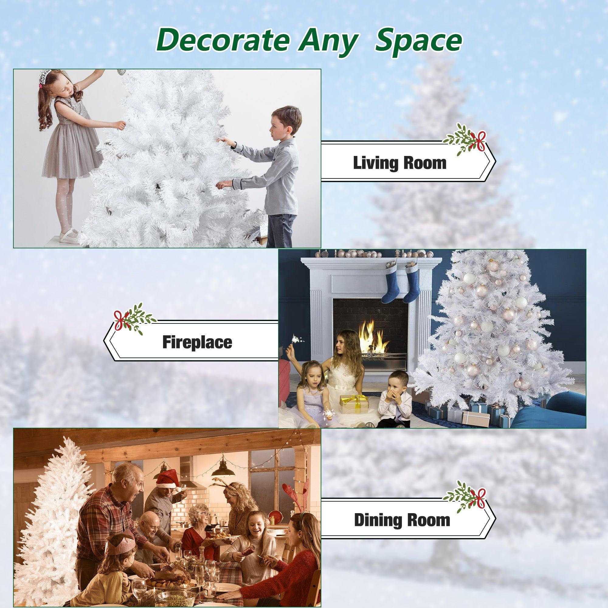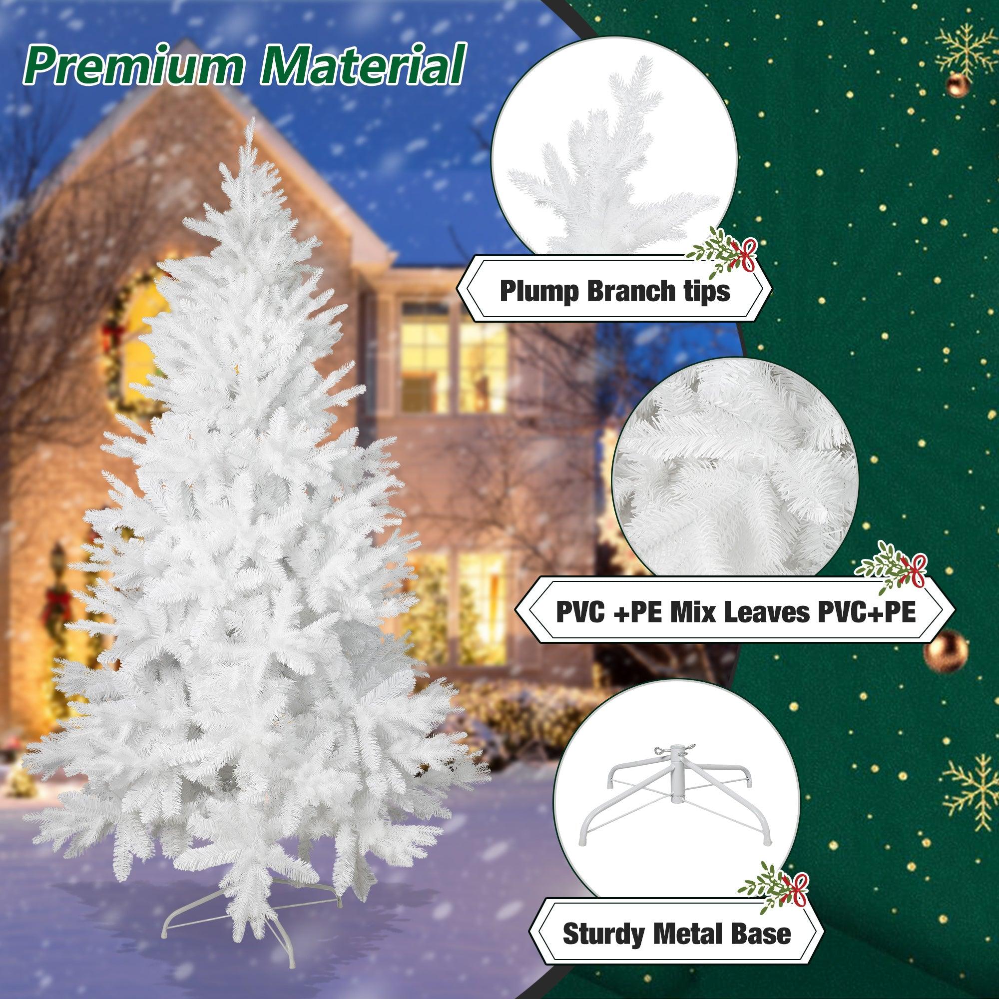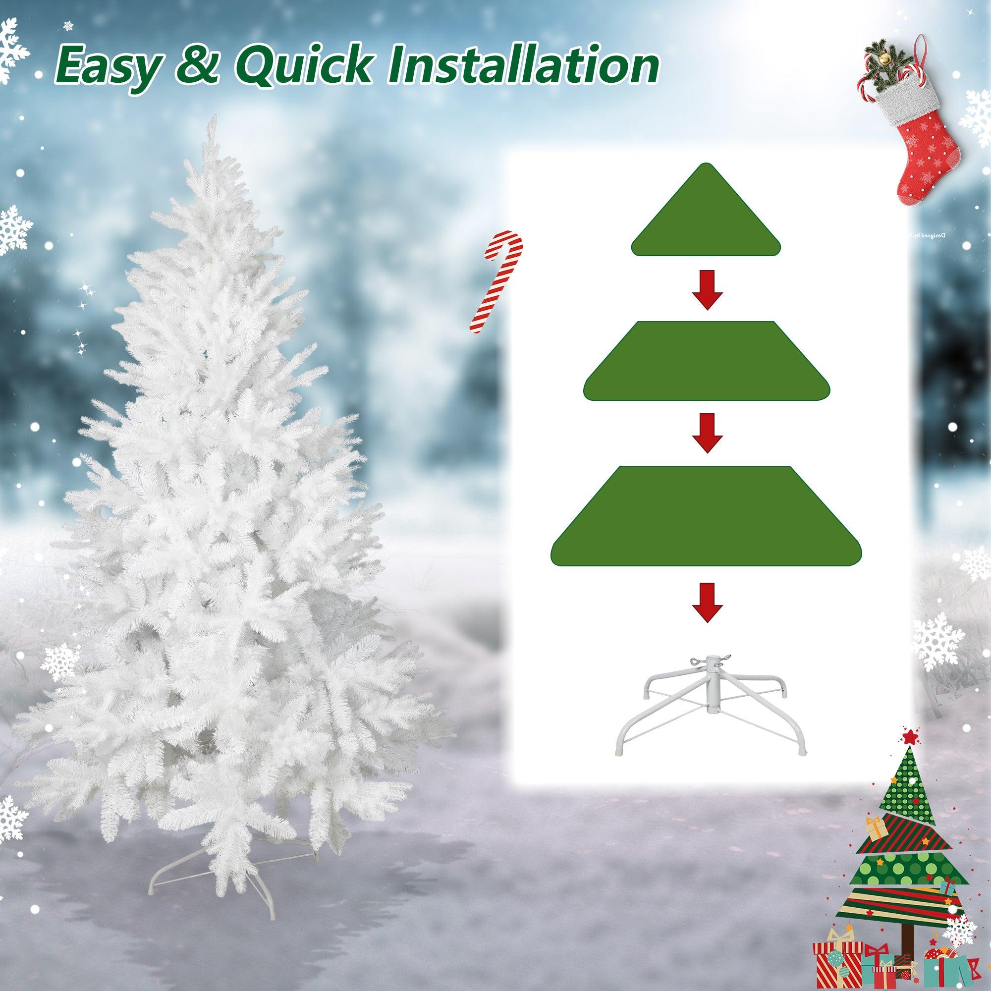 6.9' White Artificial Christmas Pine Tree Xmas Tree with 1150 Branch Tips Metal Stand